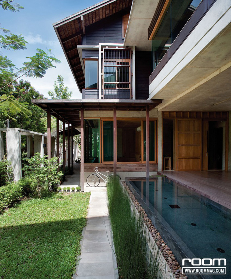 บ้านไทยร่วมสมัยที่ถูกออกแบบให้เข้ากับสภาพอากาศ พื้นที่ และวิถีชีวิตเป็นหลัก โดยให้ความสำคัญตั้งแต่ทิศทางการวางตัวบ้าน และออกแบบกันสาดให้ยื่นยาวเป็นพิเศษ แม้ในเวลาฝนตก ก็สามารถเปิดประตูบ้านเพื่อปล่อยให้อากาศถ่ายเทและให้แสงส่องเข้ามาได้ โดยไม่ต้องกังวลเรื่องฝนสาดแต่อย่างใด เป็นบ้านเย็นสบายในทุกสภาพอากาศ