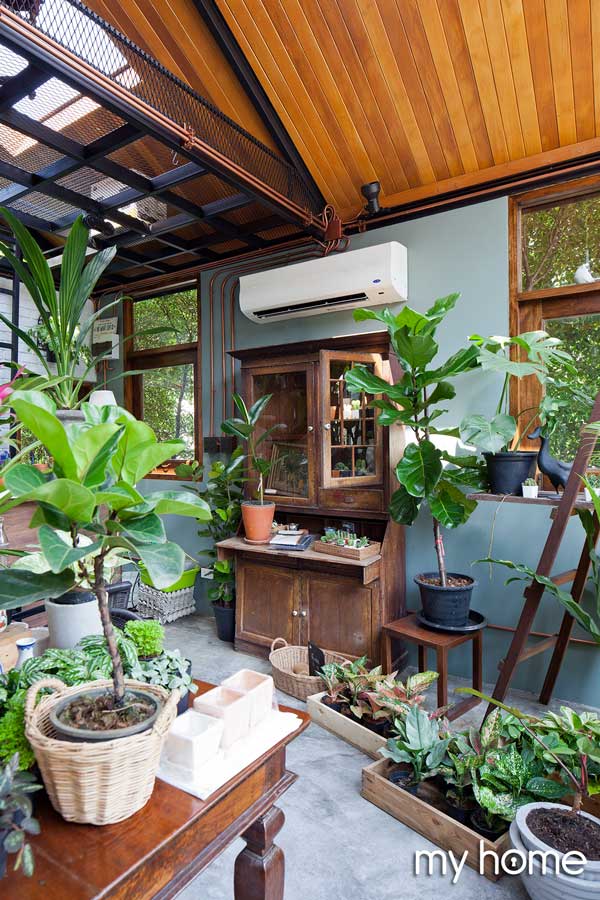 ผลักบานประตูไม้เก่าเข้าไปพบกับความเขียวขจีที่พุ่งเข้ามากระทบใจซะแรงเชียวค่ะ ขอเตือนกันตรงนี้ก่อนนะใครที่หัวใจแพ้ความเขียวหล่ะก็ ก่อนเข้าร้านต้องตั้งสติกันให้ดีๆเดี๋ยวเผลอหลุดกรี๊ดออกมาหล่ะก็ น่าอายแย่เลย : )