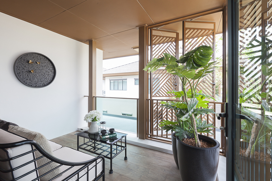 นอกจากนี้ยังมีพื้นที่ระเบียงขนาดใหญ่ที่เรียกว่า Sanctuary Space อีกหนึ่งไฮไลท์ล่าสุดที่ออกแบบเพื่อการพักผ่อนที่มากกว่าอย่างแท้จริงด้วยสเปซระเบียงกว้าง ส่วนต่อขยายจากโถงพักผ่อนที่เชื่อมต่อสู่พื้นที่ห้องรับแขกแบบ semi-outdoor ซึ่งเปิดรับแสงและลมจากธรรมชาติด้วยช่องเปิดบานกระจกขนาดใหญ่ ที่ช่วยเพิ่มฟังก์ชันในการเปิด-ปิดกระจก