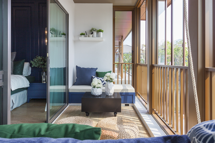 ต้อนรับลูกบ้านด้วยสภาพแวดล้อมน่าอาศัยโอบล้อมด้วยภูมิทัศน์ธรรมชาติที่สวยงามภายในโครงการ โดดเด่นด้วยรูปลักษณ์ภายนอกบ้านที่สวยงามร่วมสมัยผสมผสานความโมเดิร์นเข้ากับไลฟ์สไตล์ไทยภายใต้คอนเซ็ปต์ Urban sanctuary พร้อมพื้นที่ใช้สอยบริเวณกว้างถึง 4 ห้องนอนพร้อมห้องแม่บ้านตั้งแต่แบบบ้านเริ่มต้น นอกจากนี้ยังดึงองค์ประกอบต่างๆ ที่ใช้ภายในรีสอร์ทมาประกอบกับฟังก์ชันของบ้าน อาทิ ระแนงบังแดดลวดลาย Modern Oriental ทันสมัยไม่ซ้าใคร, กระเบื้องลายไม้เพื่อเพิ่มสีของตัวบ้านให้อบอุ่นมากขึ้น และ สวนส่วนกลางที่ตกแต่งด้วยพันธุ์ไม้หลากสีสัน เป็นต้น