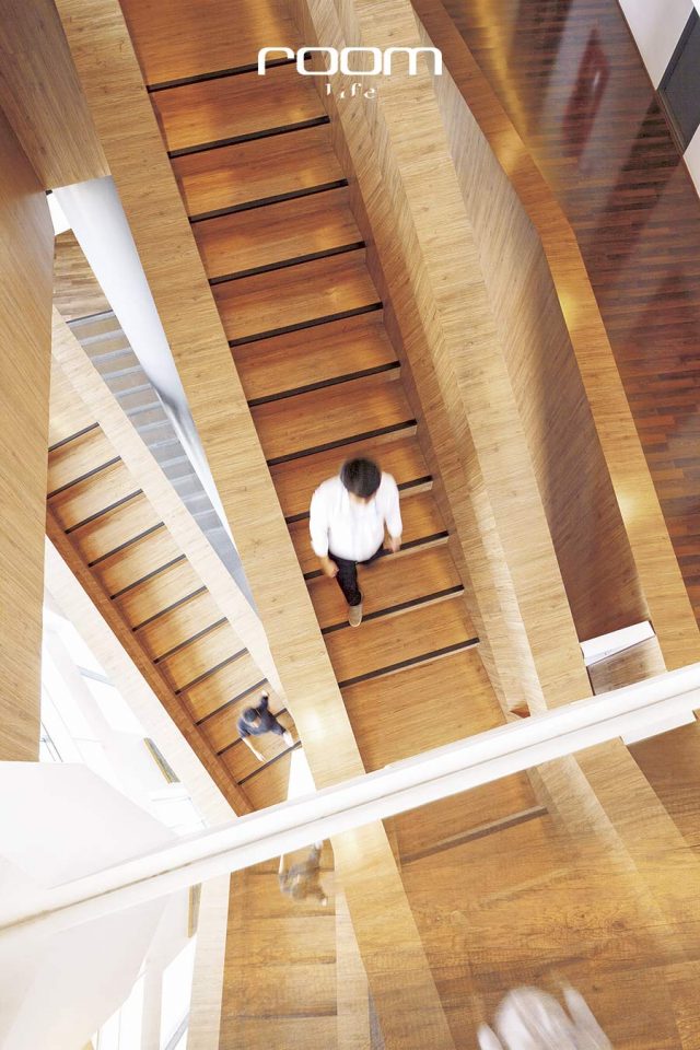 โถงบันไดซึ่งเกิดจากไอเดียการขับเน้นเอกลักษณ์ให้กับบริษัทจึงไม่ได้จบอยู่ที่แค่ความสวยงามของงานออกแบบเพียงอย่างเดียว แต่ยังคำนึงถึงวิถีชีวิตของผู้ใช้งานเป็นหลัก ดังที่สถาปนิกได้กล่าวไว้ว่า “มันทำให้เกิดการปฏิสัมพันธ์ของคนระหว่างแผนกมากขึ้น บรรยากาศการทำงานจึงถูกกำหนดได้ด้วยดีไซน์จริง ๆ”