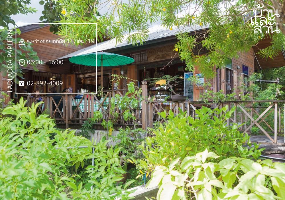 จากที่เราขับรถผ่านมาแถวเอกชัย 117 เราก็พบกับเรือนไม้หลังนี้ ที่รายล้อมไปด้วยสีเขียวของต้นไม้ที่ดูแล้วสดชื่นจริงๆ เราไม่รอช้า รีบลงไปดูว่าที่นี่คืออะไร เมื่อเดินเข้ามาเราก็พบว่าที่นี่คือ ร้านลัดดา พาเพลิน ร้านแรกที่เราจะแวะกันในวันนี้