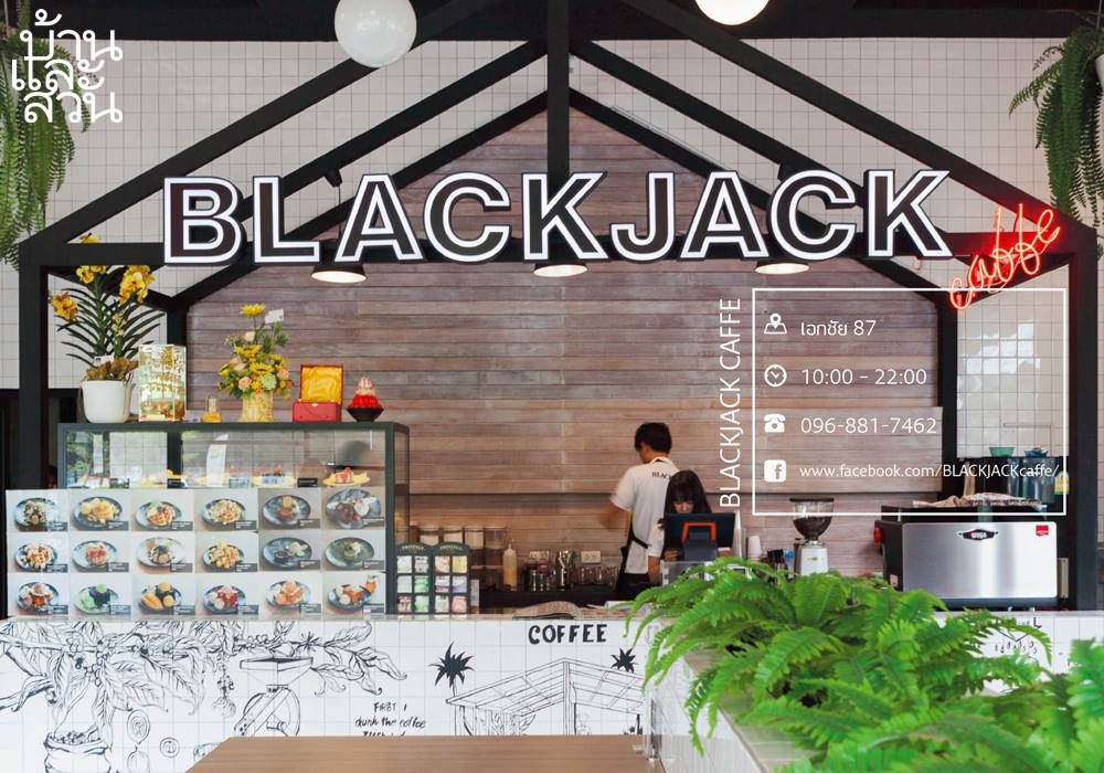 เดินย่อยกันเสร็จแล้วเราก็มาต่อกันที่ BLACKJACK caffe คาเฟ่บรรยากาศน่ารักๆที่ตั้งอยู่ข้างหน้าทางเข้าของโครงการแคโนพีนี่เอง ตัวร้านเน้นใช้สีพื้นๆอย่างสีขาวตัดกับโครงเหล็กสีดำ ให้ลุคเท่ๆ ที่ไม่ดูหนักจนเกินไป เน้นความโปร่งโล่ง บรรยากาศภายในร้านสบายๆ เหมาะกับวัยรุ่นและกลุ่มเพื่อนมานั่งเล่น ทานขนมกัน ที่นี่มีขนมและเครื่องดื่มให้เลือกทานมากมายอีกด้วย