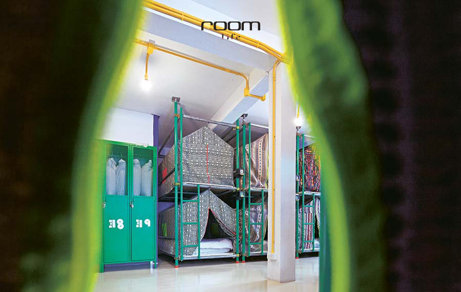 การเลือกลวดลายของเต็นท์ก็เป็นอีกประเด็นที่หาจุดลงตัวอยู่นานพอสมควร เพราะการซื้อเต็นท์สำเร็จรูปมาตั้งไว้คงจะดูธรรมดาเกินไป กระตุ้นให้คุณกรผู้มีพื้นฐานด้านแฟชั่น ต้องลงไปเลือกซื้อผ้า และสั่งตัดด้วยตัวเอง โดยมีคุณแอมรับหน้าที่ดูแลเรื่องโครงสร้างเหล็กของเตียง โดยออกแบบโครงสร้างใหม่เพื่อรองรับขนาดที่นอนที่ใหญ่กว่าเตียงสองชั้นทั่วไป แถมโครงสร้างเตียงและผ้าทั้งหมดยังรื้อและประกอบใหม่ได้ ลายผ้าที่ทั้งคู่เลือกส่วนใหญ่เน้นลายกราฟิกที่ได้รับแรงบันดาลใจมาจากชนเผ่าที่มีอยู่อย่างมากมาย เพื่อสื่อว่าโฮสเทลแห่งนี้พร้อมต้อนรับนักเดินทางจากทั่วโลก