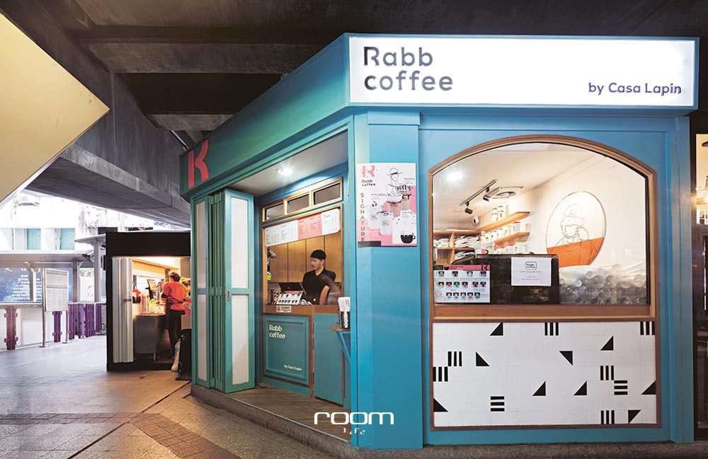 ท่ามกลางความพลุกพล่านและวุ่นวายของผู้คนที่ต่างมีเป้าหมายของตัวเองว่าจะไปทิศทางไหนบนสถานีรถไฟฟ้าศาลาแดง แต่กลับต้องชะลอฝีเท้าลงเมื่อพบกับคาเฟ่เล็ก ๆ ที่มีหน้าร้านสีฟ้าเทอร์คอยส์เด่นสะดุดตา บวกกับภาพลายเส้นที่เป็นเอกลักษณ์ของ Rabb Coffee ร้านกาแฟแบรนด์ลูกของ Casa Lapin ที่ยังคงคาแรคเตอร์ของแบรนด์แม่ไว้ได้อย่างดี