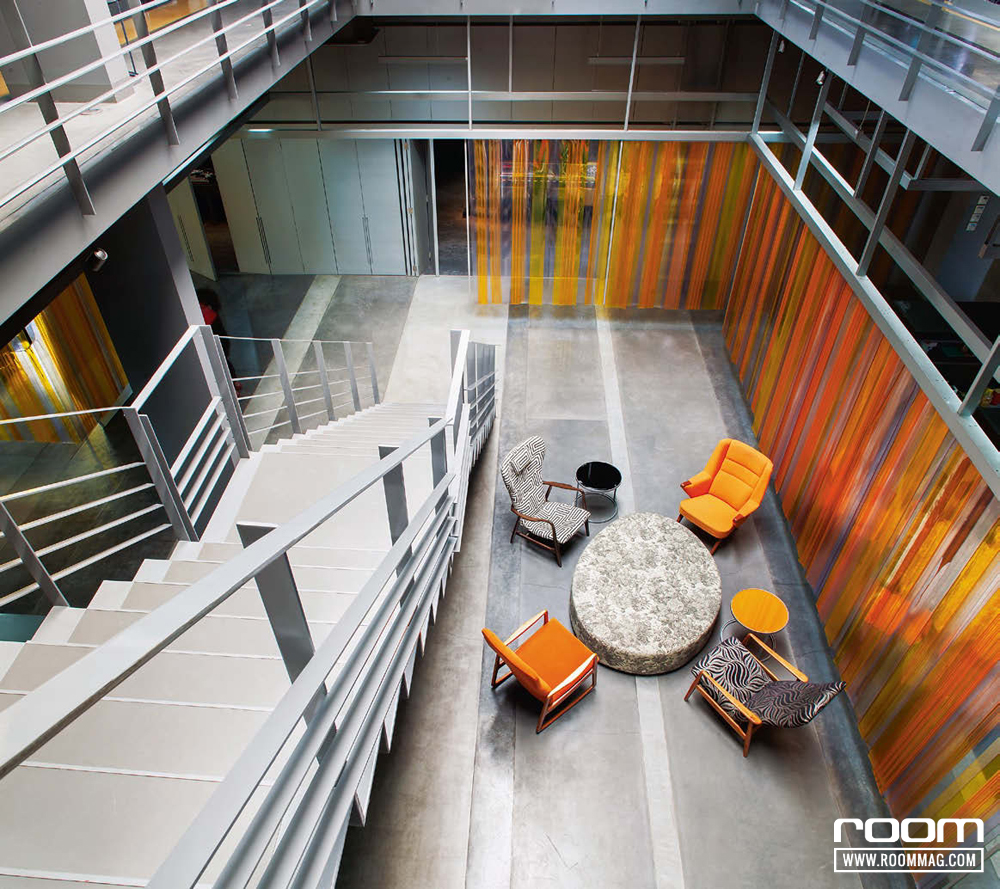 และเพื่อให้พนักงานทุกคนทำงานร่วมกันอย่างใกล้ชิดเหมือนครอบครัวเดียวกัน ภายในจึงออกแบบเป็นโอเพ่นสเปซ ไม่มีแม้กระทั่งห้องของผู้บริหาร ทุกคนมองเห็นกัน ทุกคนได้ยินกัน เพื่อที่จะแลกเปลี่ยนแชร์ไอเดียกันได้ตลอดเวลาโดยไม่มีการแบ่งแยก เป็นออฟฟิศที่สร้างขึ้นมาเพื่อการทำงานแบบครอบครัวโดยแท้จริง