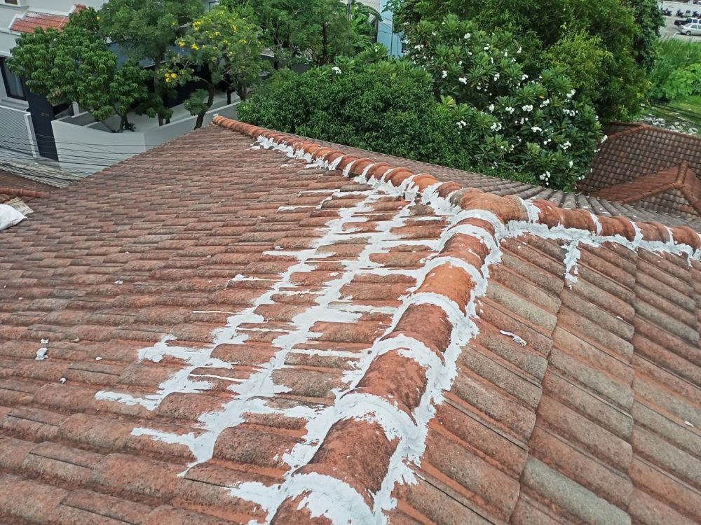 2.การซ่อมแบบปฐมพยาบาล หรือการซ่อมผิดวิธี กล่าวคือช่างเจอจุดรั่วจริง แต่เลือกใช้วิธีการซ่อมแบบให้หายได้ชั่วคราว ไม่ได้รื้อ-แก้ไขอุปกรณ์หลังคาที่มีปัญหา เช่น ใช้ยาซิลิโคน ทาน้ำยากันซึม อุดปูนโปะเข้าไปในบริเวณที่มีปัญหารั่ว หรือแม้แต่จะฉีดโฟมอุดจุดรั่ว เพียง 1-2 ปีเมื่อวัสดุเหล่านี้เสื่อมสภาพ หลังคามีโอกาสกับมารั่วซ้ำใหม่อีกครั้ง