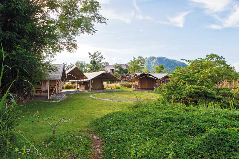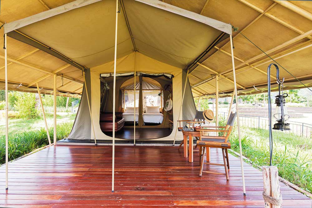 ความสนุกอีกอย่างของการมาเที่ยวคือการเปลี่ยนบรรยากาศในการนอน โดยเฉพาะการได้นอนเต็นท์กลางป่าที่ Lala Mukha Tented Resort Khao Yai ซึ่งชวนให้เรานึกถึงความทรงจำของการเข้าค่ายในวัยเด็ก ด้วยบรรยากาศแบบซาฟารีที่ทำให้เรารู้สึกผ่อนคลายไปกับต้นไม้ใบหญ้าและการตกแต่งด้วยไม้ไผ่หรือไม้ธรรมชาติ ที่ให้อารมณ์ดิบๆแบบรัสติก หลังคามุงหญ้าแฝก ผนังทำสีดินเผา ของตกแต่งสวยๆในอารมณ์พื้นถิ่น ทั้งหมดนี้เป็นองค์ประกอบที่สร้างภาวะแสนสบายได้ดี