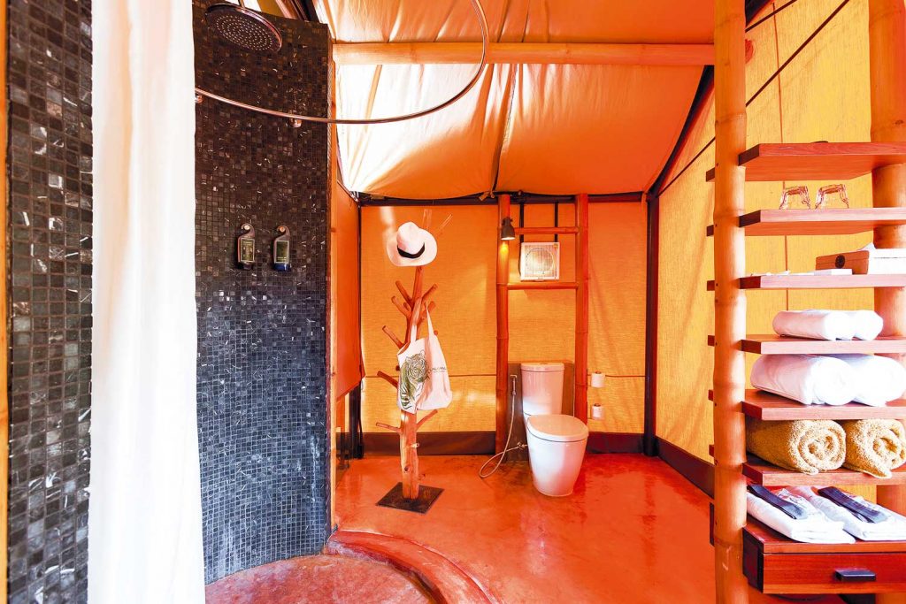 เมื่อเช็กอินความสนุกก็เริ่มขึ้น เราจะได้รับคีย์การ์ด แม่กุญแจล็อกเต็นท์ และไฟฉาย บ้านพักแต่ละหลังจัดวางเป็นกลุ่ม มีพื้นที่ส่วนกลางให้นั่งคุยเล่นแบบล้อมรอบกองไฟ สนุกแน่ๆหากมากับกลุ่มเพื่อน ห้องพักมีทั้งหมด 3 แบบ คือ Eco Safari Tent ห้องพักแบบใช้ห้องน้ำรวมในส่วนกลาง Deluxe Savanna Tent ห้องพักแบบมีห้องน้ำในตัว และ Loft Tree House บ้านต้นไม้หลังใหญ่ยกสูง สำหรับการมาพักแบบเป็นครอบครัว ครั้งนี้ฉันได้พักในห้องแบบใช้ห้องน้ำส่วนกลาง เชื่อเถอะเสน่ห์ของการพักผ่อนในรูปแบบนี้คือการได้ใช้เวลาร่วมกัน การได้อาบน้ำพร้อมกับเพื่อน ได้พูดคุยเล่น เป็นช่วงเวลาที่แสนสนุกและถือเป็นการพักหัวใจได้ดี