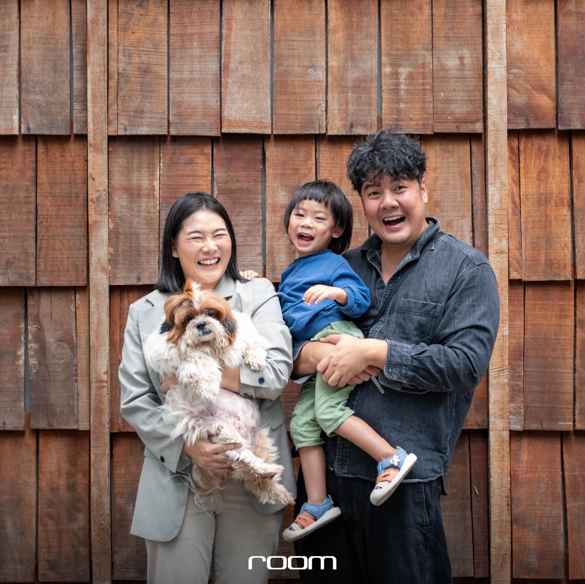 คุณเอกกอบบุลแพทย์ – คุณภัทรา ปคุณวานิช และน้องเบส ลูกชาย ถ่ายภาพคู่กับสุนัขพันธุ์ชิห์สุ (Shih Tzu) ซึ่งมีชื่อเรียกว่า เจ้าหมูอ้วน