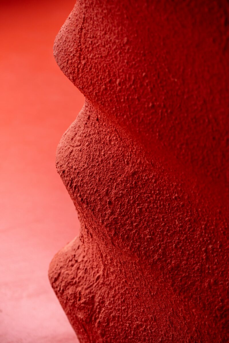 ตัวร้านโดดเด่นด้วยการใช้สีสันและวัสดุ ด้วยการเลือกใช้โทนสีส้มซึ่งสีนี้ไม่ใช่แค่สีที่ดูโดดเด่น แต่คือสีที่ช่วยสร้าง “อุณหภูมิทางอารมณ์” ที่ต้องการมอบให้กับพื้นที่ ด้วยการเลือกใช้เทคนิคการทำสีบนพื้นผิวซึ่งมีเท็กซ์เจอร์หยาบแต่ละเอียดเนียนไร้รอยต่อ ขับเน้นให้เส้นโค้งและรูปทรงทั้งหมดดูเป็นหนึ่งเดียวกันอย่างสมบูรณ์ที่สุด