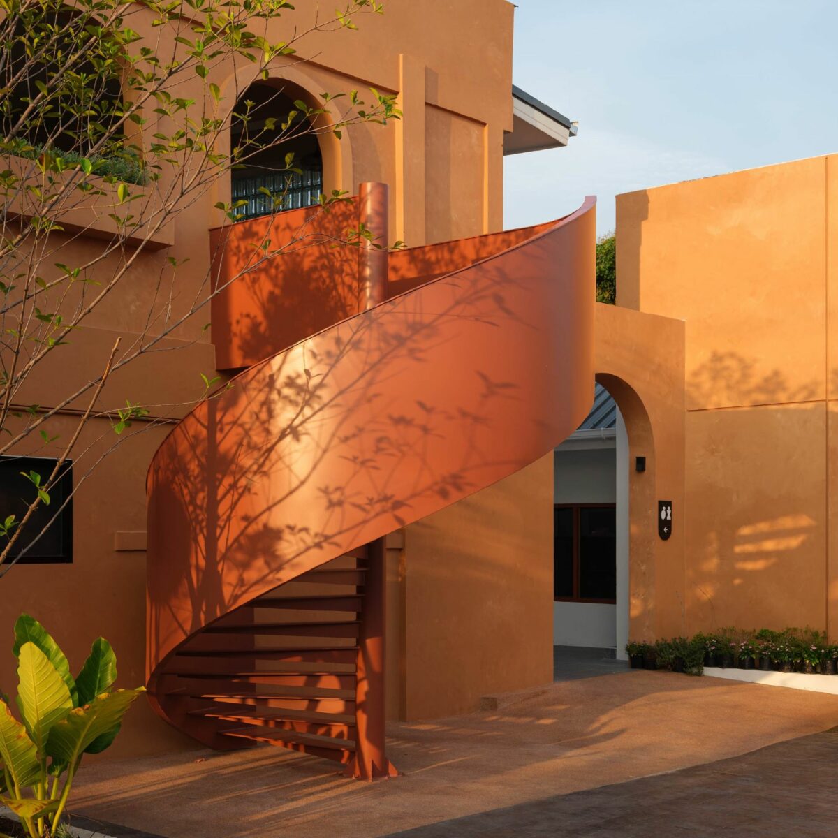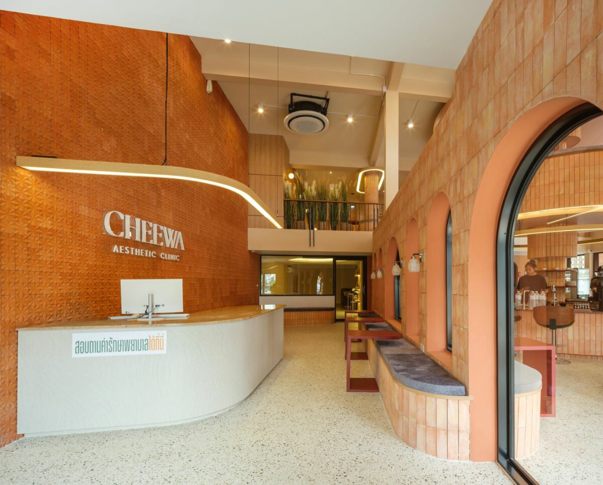 จากโจทย์ที่เจ้าของอยากให้บรรยากาศของทั้งคลินิกและคาเฟ่ดูผ่อนคลาย “อิฐ” จึงถูกเลือกให้เป็นวัสดุหลักเพื่อสร้างเอกลักษณ์ให้กับอาคาร ด้วยโทนสีธรรมชาติของอิฐที่ให้ความรู้สึกอบอุ่น เข้าถึงง่าย และแตกต่างจากภาพจำของคลินิกเสริมความงามทั่วไปที่มักใช้สีขาว การเลือกใช้อิฐจึงไม่เพียงสร้างมิติใหม่ให้กับภาพลักษณ์ของคลินิก แต่ยังสะท้อนศักยภาพของงานออกแบบที่สามารถยกระดับวัสดุเรียบง่ายให้กลายเป็นจุดขายทางธุรกิจได้อย่างเด่นชัด