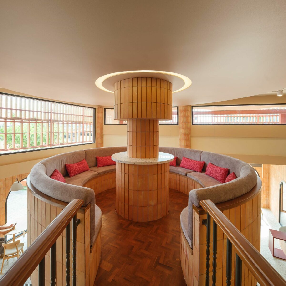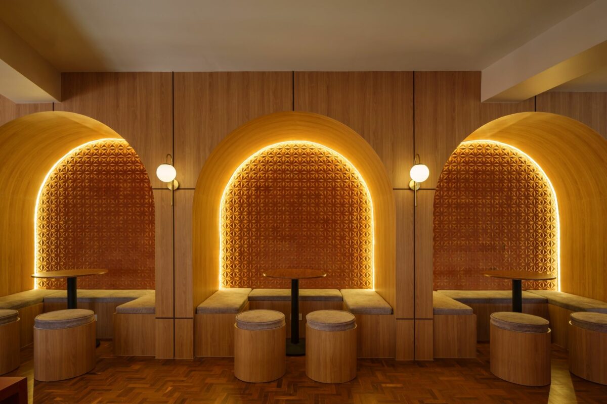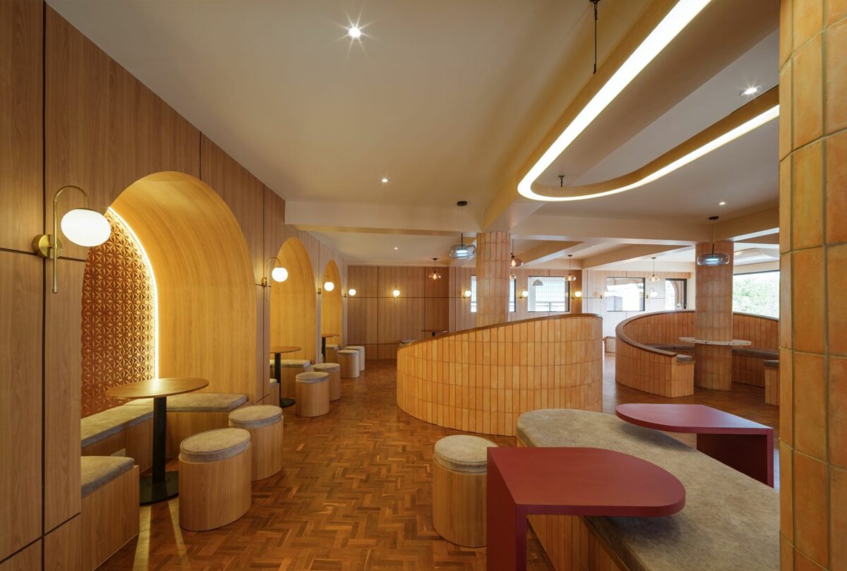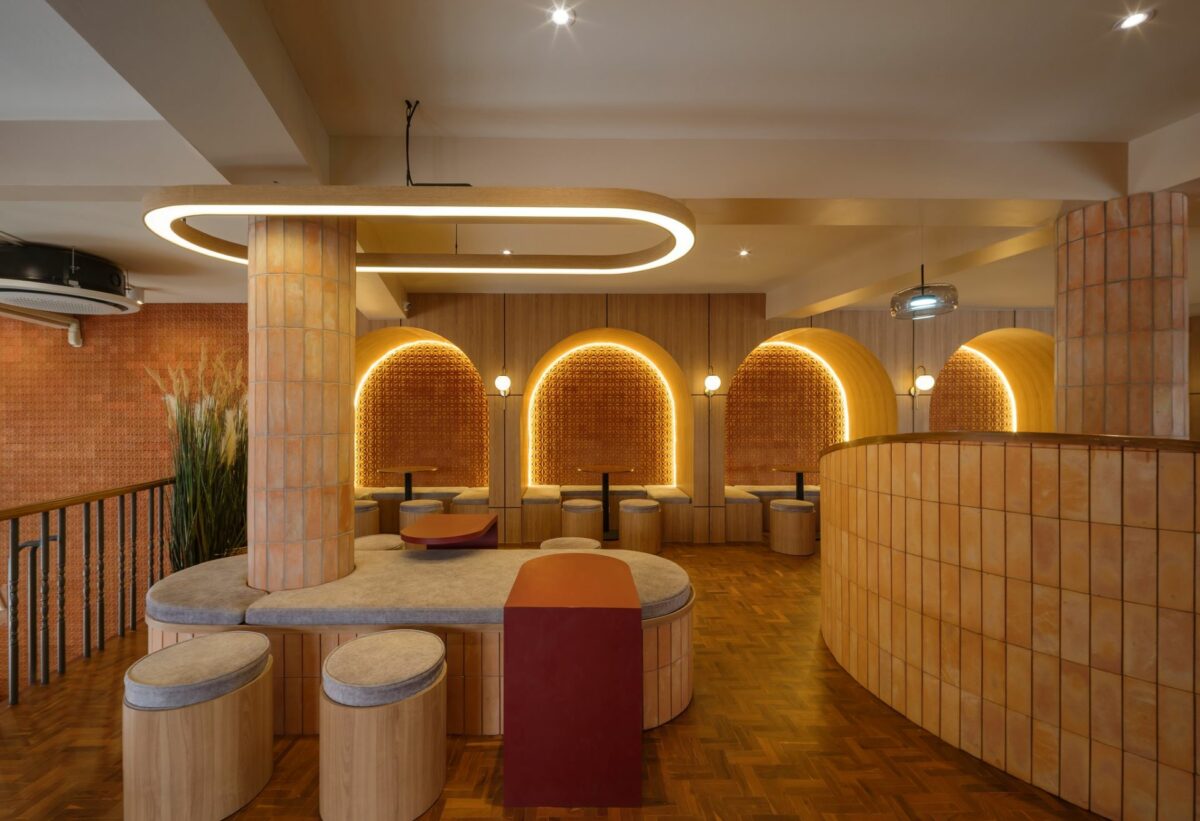 สิ่งที่น่าสนใจอีกจุดหนึ่งถัดจากการใช้วัสดุอิฐ คือเส้นสายโค้งมนที่สถาปนิกนำมาใช้ขับเน้นองค์ประกอบบางส่วนของอาคาร เช่น การใช้ช่องเปิดและผนังซุ้มโค้ง ไปจนถึงเคาน์เตอร์บาร์กลางร้าน อีกจุดเด่นที่ช่วยสร้างภาพจำให้กับลูกค้าได้ตั้งแต่แรกเห็น โดยแสดงให้เห็นรูปแบบการใช้อิฐในระนาบแนวโค้ง ต่างจากลักษะการใช้อิฐโดยทั่วไป ไอเดียนี้เกิดจากการใช้เส้นสายโค้งมนแก้ปัญหาเสาตรงกลางโถงคาเฟ่ ซึ่งเป็นข้อจำกัดด้านมุมมอง จึงแก้ปัญหาด้วยการล้อมเสาให้กลายเป็นเคาน์เตอร์ตรงกลาง รับกับที่นั่งล้อมในเสาบนพื้นที่ชั้น 2 ที่มีการเสริมโครงสร้างยื่นออกมาจากพื้นชั้น 2 เดิม จากการแก้ไขปัญหานี้ ทำให้เห็นว่าจากข้อจำกัดด้านพื้นที่ ได้กลายเป็นจุดเด่นให้แก่อาคารได้อย่างสมบูรณ์แบบ