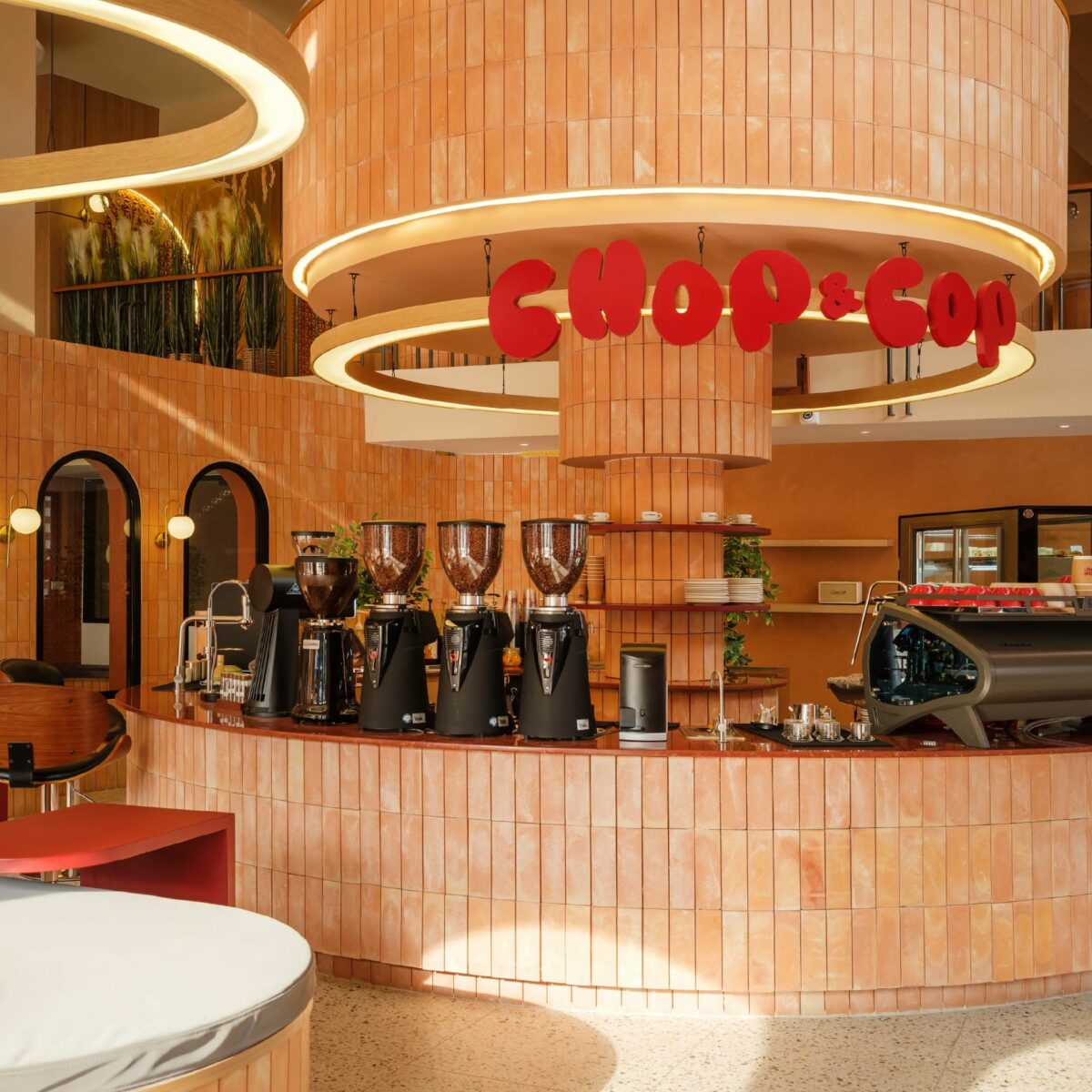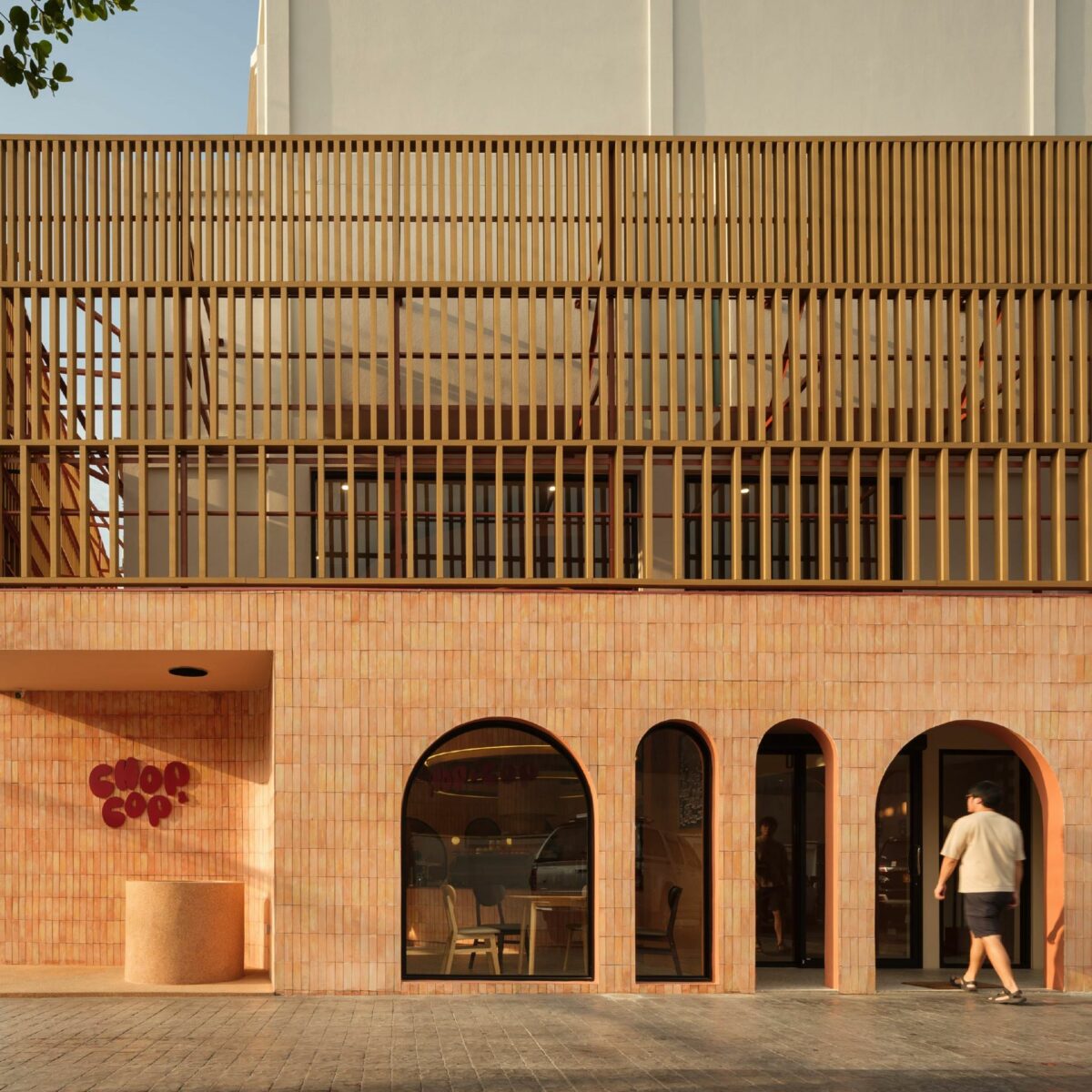 วัสดุ “อิฐ” ที่ให้ความรู้สึกธรรมชาติและชวนให้นึกถึงสิ่งปลูกสร้างในอดีต เมื่อนำมาพลิกแพลงเป็นวัสดุตกแต่งอาคารรีโนเวตของร้าน Chop & Cop Cafe ที่เป็นทั้งคาเฟ่และคลินิก ได้ช่วยส่งเสริมความงามให้แก่อาคารเก่า ทำให้เห็นศักยภาพของวัสดุที่สามารถผสานฟังก์ชั่นใหม่เข้าไปในอาคารได้อย่างกลมกลืน พร้อมทั้งสร้างความน่าสนใจและเอกลักษณ์ให้กับพื้นที่ธุรกิจได้อย่างน่าทึ่ง