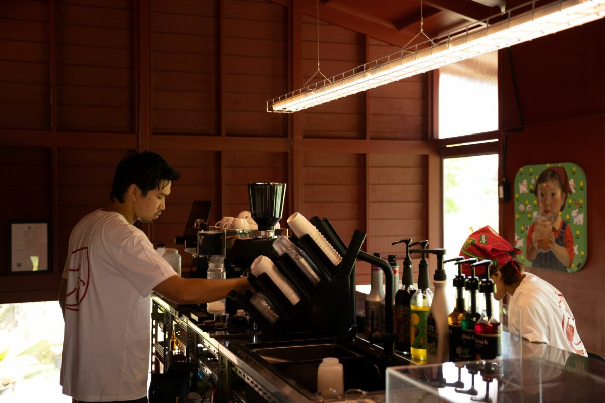 ภายในร้านวางเคาน์เตอร์บาร์แนวยาวตามแนวอาคาร ลูกค้าสามารถพูดคุยกับเจ้าของร้านได้อย่างใกล้ชิด ช่วยเพิ่มปฏิสัมพันธ์ระหว่างผู้คน ทําให้เกิดการพูดคุยแลกเปลี่ยนระหว่างเจ้าของร้านกับลูกค้าที่เดินทางมาเยี่ยมเยือน โดยสามารถพูดคุยกันได้ไม่เพียงแต่เฉพาะเรื่องของกาแฟ แต่ยังรวมไปถึงเรื่องราวในชีวิตและศิลปะตามประสาคนคอเดียวกัน ที่นี่จึงเหมาะมาพักผ่อนเสพธรรมชาติกลางสวน อบอวลด้วยบทสนทนาไม่ต่างจากการมาเที่ยวหาบ้านเพื่อน