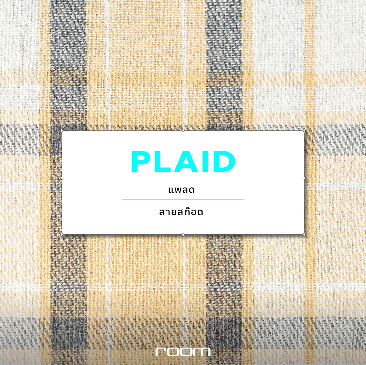 Plaid (แพลด) ลายสก๊อต มีลักษณะเป็นตารางหลายสี คล้ายกับลาย Tartan (ทาร์ทัน) ที่มีเส้นขนาดต่าง ๆ พาดกันเป็นตาราง โดย Plaid มักใช้เรียกในอเมริกาเหนือและวงการแฟชั่น เพราะเป็นลายที่เป็นซิกเนเจอร์ของแบรนด์ดังระดับโลกอย่าง Burberry