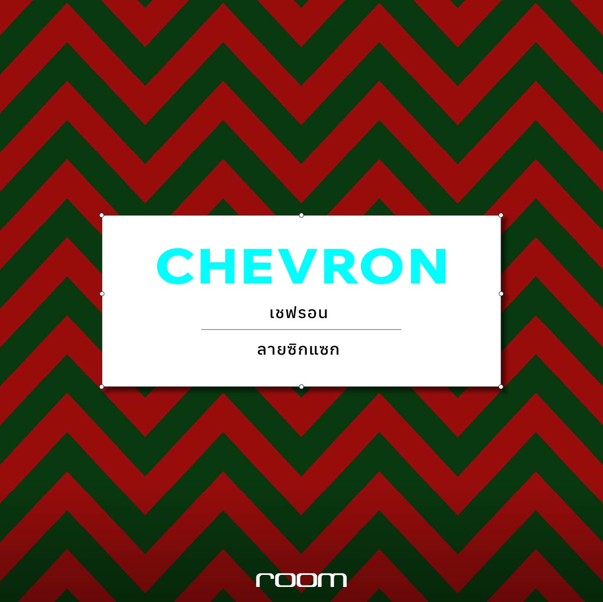 Chevron (เชฟรอน) ลายที่มีลักษณะเป็นรูปตัว “V” ซ้อนกันเป็นซิกแซก หรือ สัญลักษณ์รูปตัว V กลับหัว มักพบเห็นบนลายผ้าหรือการออกแบบพื้นไม้ปาร์เกต์ที่ตัดเฉียงมุม 45 องศา เพื่อต่อกันให้เกิดเป็นลวดลายรูปตัว V ที่ต่อเนื่องและสวยงาม
