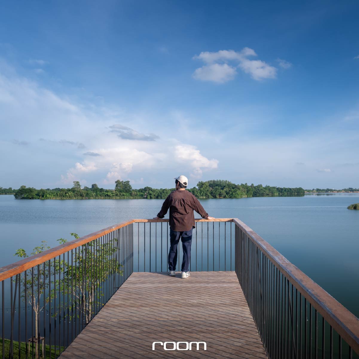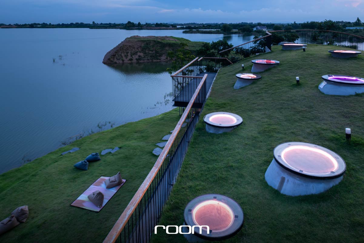 จากสถานที่ตั้งที่อยู่ริมบึงน้ำ ล้อมรอบด้วยโคกดินสูง ซึ่งครั้งหนึ่งเคยเป็นเนินสำหรับกั้นละอองทรายในเหมืองทรายเก่าไม่ให้ปลิว พร้อมมุมมองทางสายตาที่โล่งกว้างรับกับบรรยากาศน่าพักผ่อน จากทำเลที่มีเรื่องราวที่ไม่ธรรมดานี้ ผู้ออกแบบจาก POAR จึงตีความและขอนำเสนอผ่านรูปแบบสถาปัตยกรรมที่จะทำให้ทุกคนได้สัมผัสกับภูมิทัศน์และธรรมชาติอย่างแท้จริง ณ สถานที่ตั้งที่เรียกว่าว่าหาได้ยากอย่างที่นี่