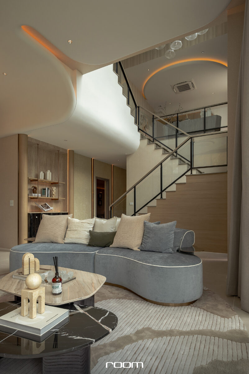 ในส่วนของการออกแบบมาในสไตล์ FUTURISTIC MODERN DESIGN ที่ทันสมัยไร้กาลเวลาสามารถส่งต่อจากรุ่นสู่รุ่นได้โดยไม่ต้องปรับแต่งอะไรเยอะ โดดเด่นด้วยความโปร่งโล่งแบบ HIGHER FOYER ที่มีความสูงถึง 7 เมตร นอกจากขับให้ดูสบายไม่อึดอัด ให้ความรู้สึกโอ่โถง ให้แสงธรรมชาติเข้ามาอย่างเต็มที่ ยังช่วยเชื่อมต่อพื้นที่ชั้นหนึ่งและสองเข้าด้วยกัน เพิ่มความพิเศษด้วยการยกชั้น และ SPLIT-LEVEL PENTHOUSE ในส่วนของห้องนอนมาสเตอร์ทำให้ได้ความเป็นส่วนตัวที่ครบครันในยูนิตตัวเอง