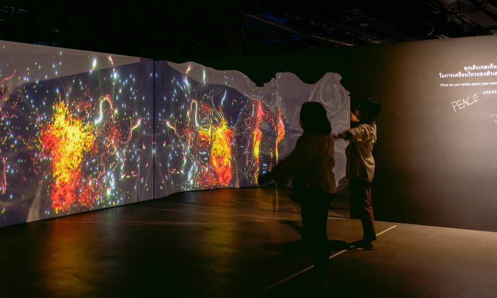 “เพราะมันมีกลุ่มคนที่ได้ประโยชน์เชิงลึกจากนิทรรศการนี้อยู่จริง ๆ ยกตัวอย่างเคสหนึ่ง เช่น มีจิตแพทย์ หรือนักจิตวิทยา เขาให้ผู้ป่วยมางานนิทรรศการ ให้มาดูแลตัวเองผ่านงานศิลปะ แล้วผู้ป่วยคนนั้นเขาก็เล่าว่าระหว่างที่เขาเดินไปตามสเปซต่าง ๆ มันจะมีจังหวะหนึ่งที่เงียบ ซึ่งเป็นประสบการณ์ที่เราดีไซน์ไว้ จุดนี้มันทำให้เขาค้นพบคำตอบบางอย่างที่เขาติดค้างอยู่นาน