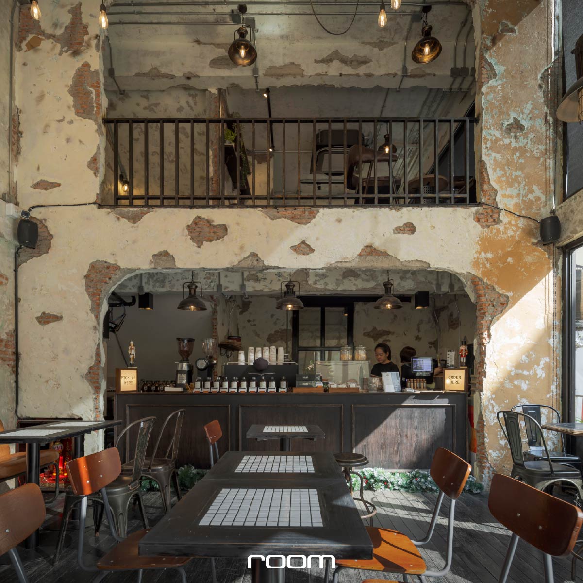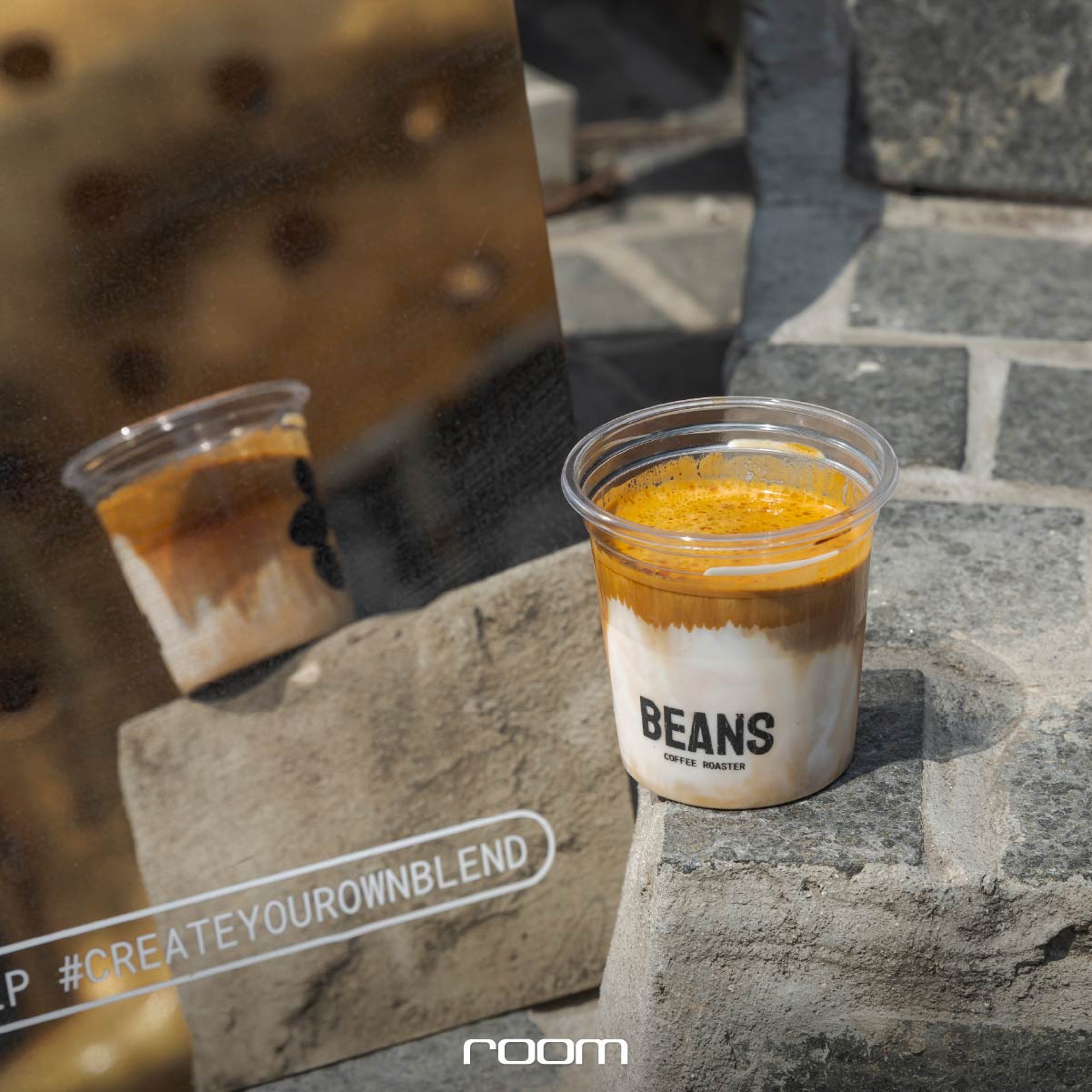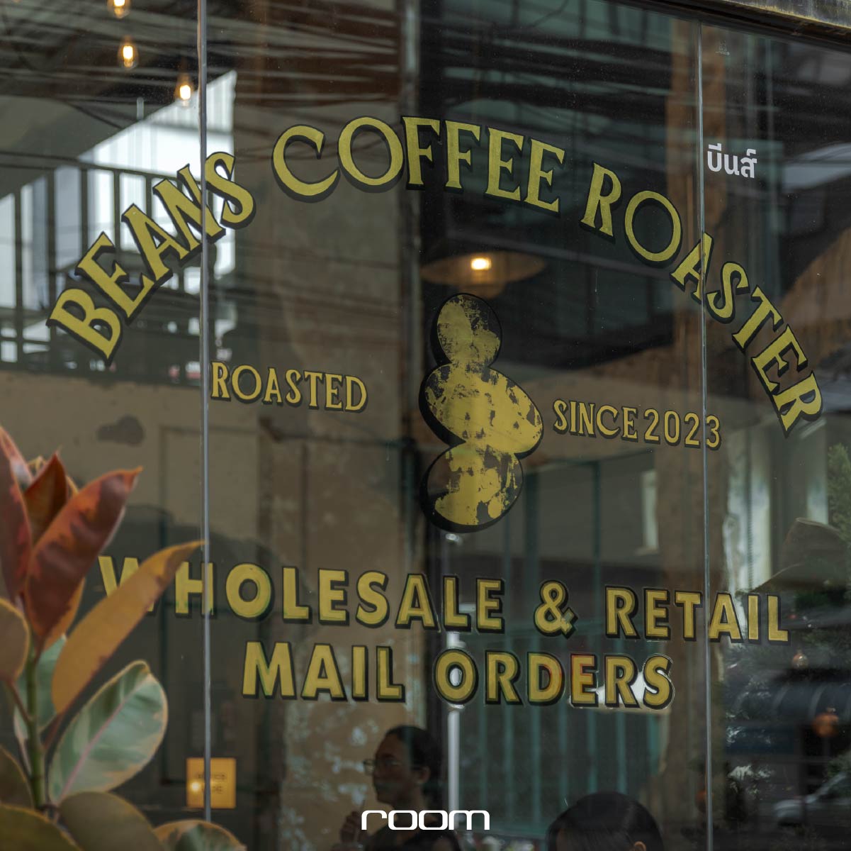 BEANS Coffee Roaster ประกอบด้วยพื้นที่ชั้น 1 และชั้นลอยเป็นส่วนคาเฟ่ จากนั้นชั้น 2 – 4 จนถึงชั้นดาดฟ้า ออกแบบให้เป็นพื้นที่ยืดหยุ่นรองรับกิจกรรมหลากหลาย โดยร้านกาแฟชั้นล่างโดดเด่นที่โถงสูงดับเบิ้ลสเปซทำให้ร้านดูโปร่งโล่ง สอดคล้องกับผนังกระจกโดยรอบ เกิดจากตัดสินใจทุบผนังและหน้าต่างเดิมออกทั้งหมด คงแต่โครงสร้างหลักไว้แล้วกรุผนังใหม่ด้วยกระจกรับแสงธรรมชาติเพื่อสร้างบรรยากาศนั่งสบาย ภายในตกแต่งสไตล์วินเทจด้วยเฟอร์นิเจอร์เหล็กและไม้ดูอบอุ่น เข้ากับพื้นไม้และผนังกระเทาะทำให้ร้านดูเก่าแก่