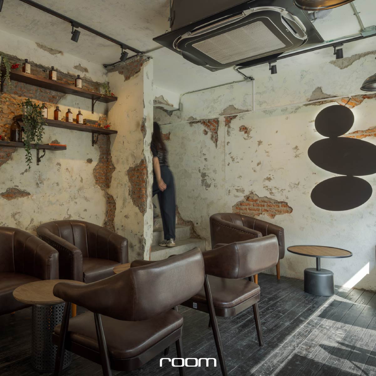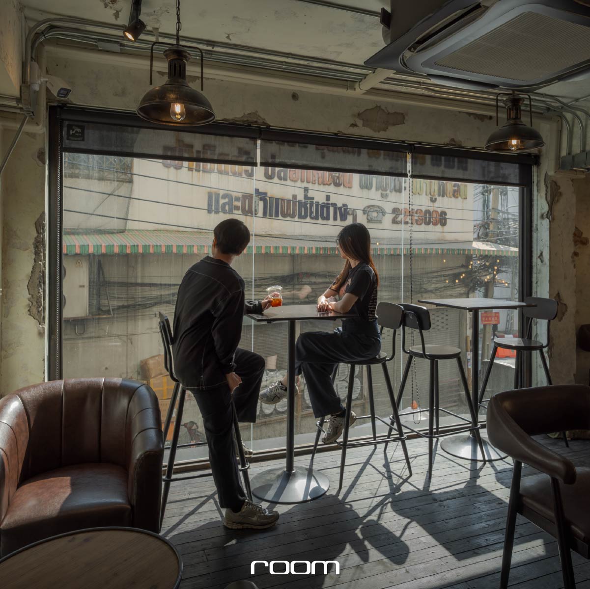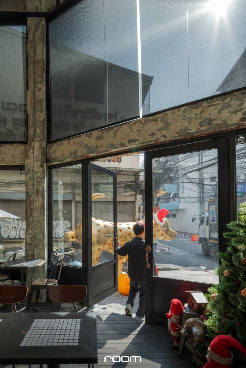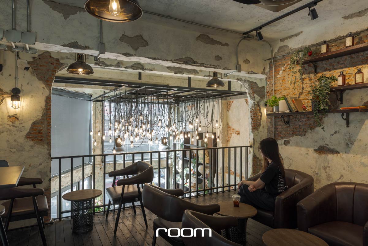 BEANS Coffee Roaster ประกอบด้วยพื้นที่ชั้น 1 และชั้นลอยเป็นส่วนคาเฟ่ จากนั้นชั้น 2 – 4 จนถึงชั้นดาดฟ้า ออกแบบให้เป็นพื้นที่ยืดหยุ่นรองรับกิจกรรมหลากหลาย โดยร้านกาแฟชั้นล่างโดดเด่นที่โถงสูงดับเบิ้ลสเปซทำให้ร้านดูโปร่งโล่ง สอดคล้องกับผนังกระจกโดยรอบ เกิดจากตัดสินใจทุบผนังและหน้าต่างเดิมออกทั้งหมด คงแต่โครงสร้างหลักไว้แล้วกรุผนังใหม่ด้วยกระจกรับแสงธรรมชาติเพื่อสร้างบรรยากาศนั่งสบาย ภายในตกแต่งสไตล์วินเทจด้วยเฟอร์นิเจอร์เหล็กและไม้ดูอบอุ่น เข้ากับพื้นไม้และผนังกระเทาะทำให้ร้านดูเก่าแก่