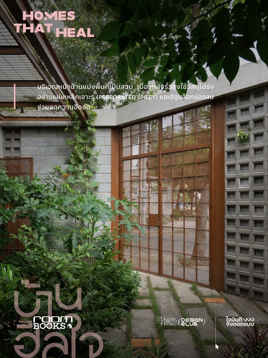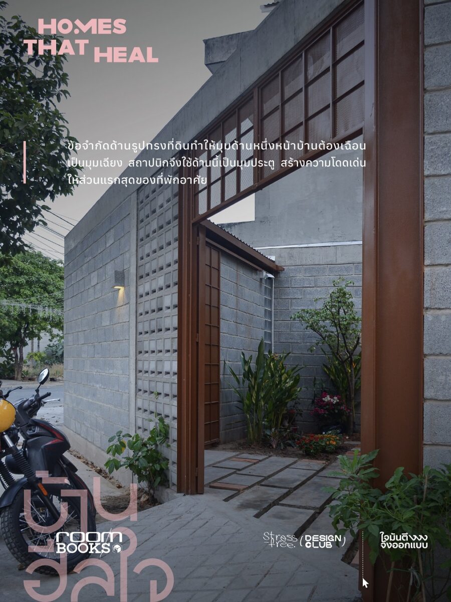 ด้วยการผสมผสานพื้นที่ปลูกผักตามวิถีชีวิตการกินอยู่แบบมังสวิรัติของเจ้าของบ้าน รวมถึงพื้นที่ปฏิบัติธรรมและการเดินทางด้านจิตวิญญาณที่ภายใน เพื่อให้บ้านเป็นที่ปลอดภัยทั้งทางร่างกายและจิตใจไปพร้อมกัน