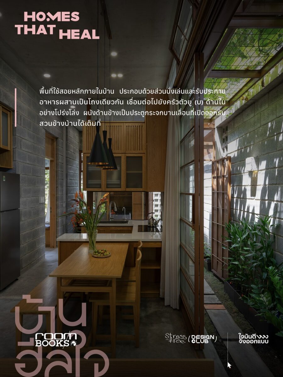 “บ้านฮีลใจ Homes That Heal” หนังสือที่รวบรวมบ้าน 10 หลังทั้งในไทยและประเทศเพื่อนบ้านรอบอาเซียน ที่เปี่ยมด้วยแนวคิดการออกแบบเพื่อส่งเสริมสุขภาวะผู้อยู่อาศัยในหลายมิติ ไม่ว่าจะเป็นทั้งบ้านที่ใช้สวนเกษตรเสริมสุขภาวะกาย บ้านที่ออกแบบให้พื้นที่ใช้สอยโปร่งโล่งรับแสงและลม รองรับการดูแลสุขภาพแบบองค์รวม ไปจนถึงบ้านที่ใช้ปรัชญาเชิงศาสนา พร้อมพื้นที่ปฏิบัติธรรม เพื่อส่งเสริมสุขภาวะใจให้ผู้อยู่ เพื่อตอบรับเทรนด์การดูแลกายและใจของคนในยุคปัจจุบัน