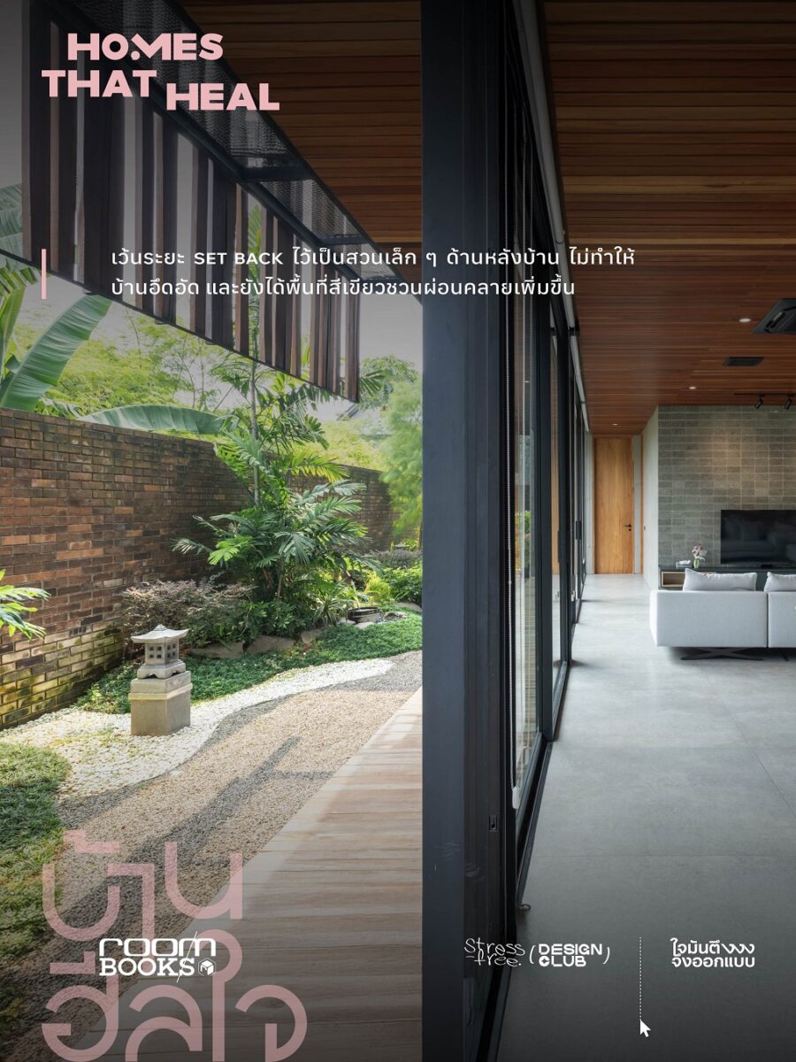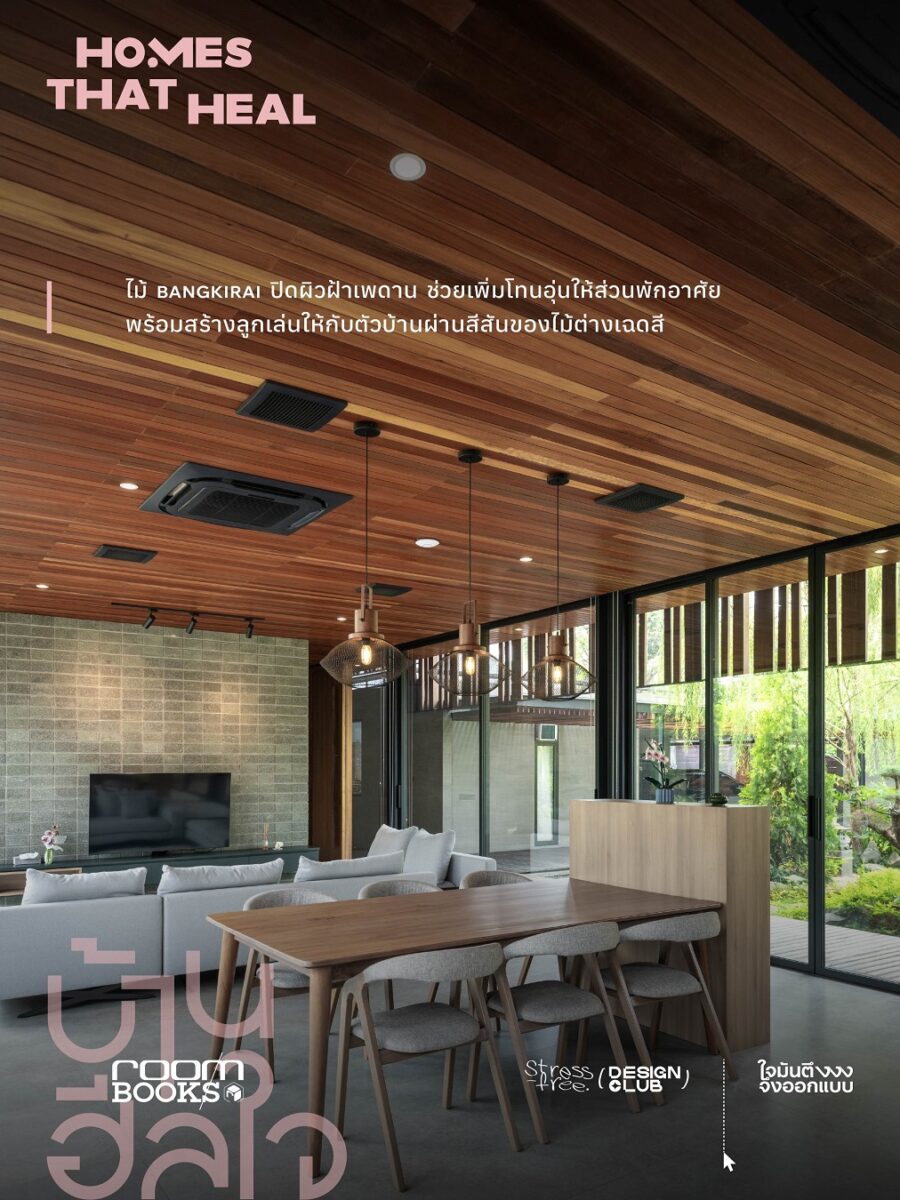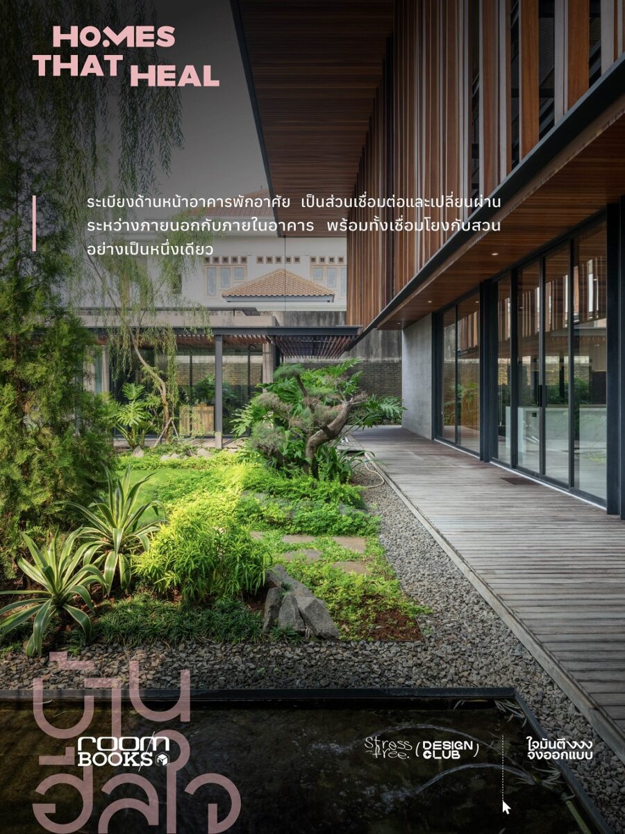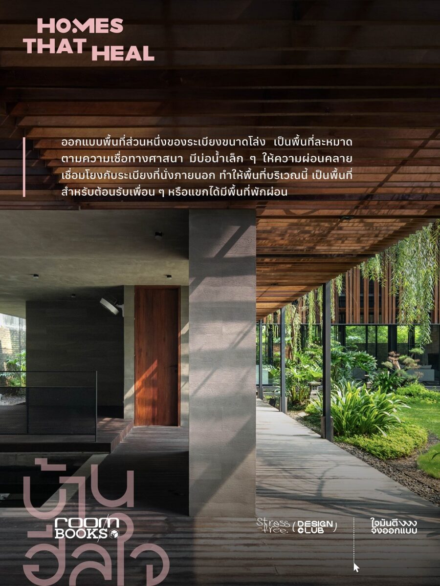“บ้านฮีลใจ Homes That Heal” หนังสือที่รวบรวมบ้าน 10 หลังทั้งในไทยและประเทศเพื่อนบ้านรอบอาเซียน ที่เปี่ยมด้วยแนวคิดการออกแบบเพื่อส่งเสริมสุขภาวะผู้อยู่อาศัยในหลายมิติ ไม่ว่าจะเป็นทั้งบ้านที่ใช้สวนเกษตรเสริมสุขภาวะกาย บ้านที่ออกแบบให้พื้นที่ใช้สอยโปร่งโล่งรับแสงและลม รองรับการดูแลสุขภาพแบบองค์รวม ไปจนถึงบ้านที่ใช้ปรัชญาเชิงศาสนา พร้อมพื้นที่ปฏิบัติธรรม เพื่อส่งเสริมสุขภาวะใจให้ผู้อยู่ เพื่อตอบรับเทรนด์การดูแลกายและใจของคนในยุคปัจจุบัน