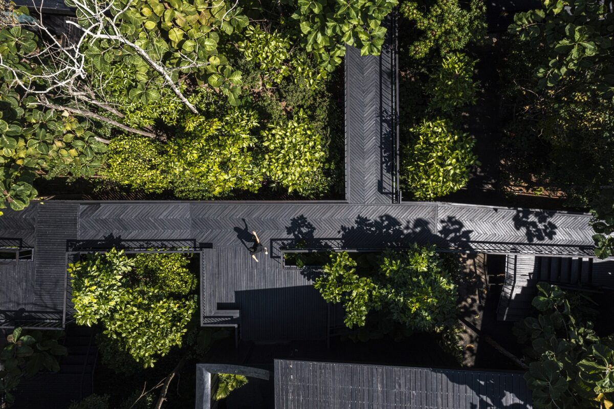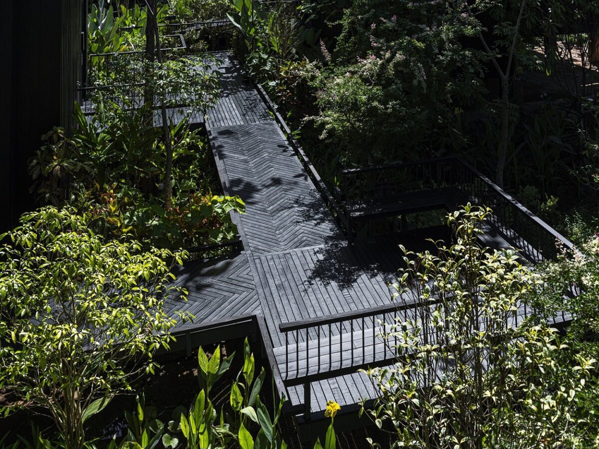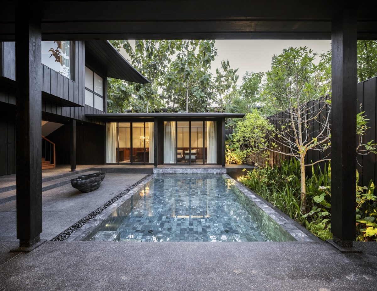 โซนป่าสัก โซนนี้ตัวอาคารจะแทรกตัวไปกับต้นสักเดิม มีหน้าต่างทรงโค้งรีที่เป็นเอกลักษณ์ เพื่อตีกรอบ (Frame) ให้เห็นลำต้นและใบสักในมุมมองที่แปลกตา ระดับสูงจะเห็นระดับยอดลำต้น ซึ่งเป็นอีกระดับที่แปลกตาไป เพราะคนปกติอาจไม่ค่อยได้เห็นต้นสักสูงขนาดนี้ หรือใกล้ขนาดนี้ โดยสถาปนิกได้ออกแบบทางเดินให้แขกได้ชื่นชมกับธรรมชาติ โดยทำเป็นสะพานลึกหายไปจากโซนอื่น ๆ ทำให้แขกค่อย ๆ เดินลัดเลาะไปตามทางเดินไม้ สัมผัสใบไม้ แสงเงา ให้ความรู้สึกสงบ และปลีกวิเวกฟังเสียงธรรมชาติอย่างสนิทสนมยิ่งขึ้น และสุดท้าย คือพูลวิลล่า 1 หลัง สำหรับครอบครัว มีสระว่ายน้ำและพื้นที่สังสรรค์แบบเป็นส่วนตัว