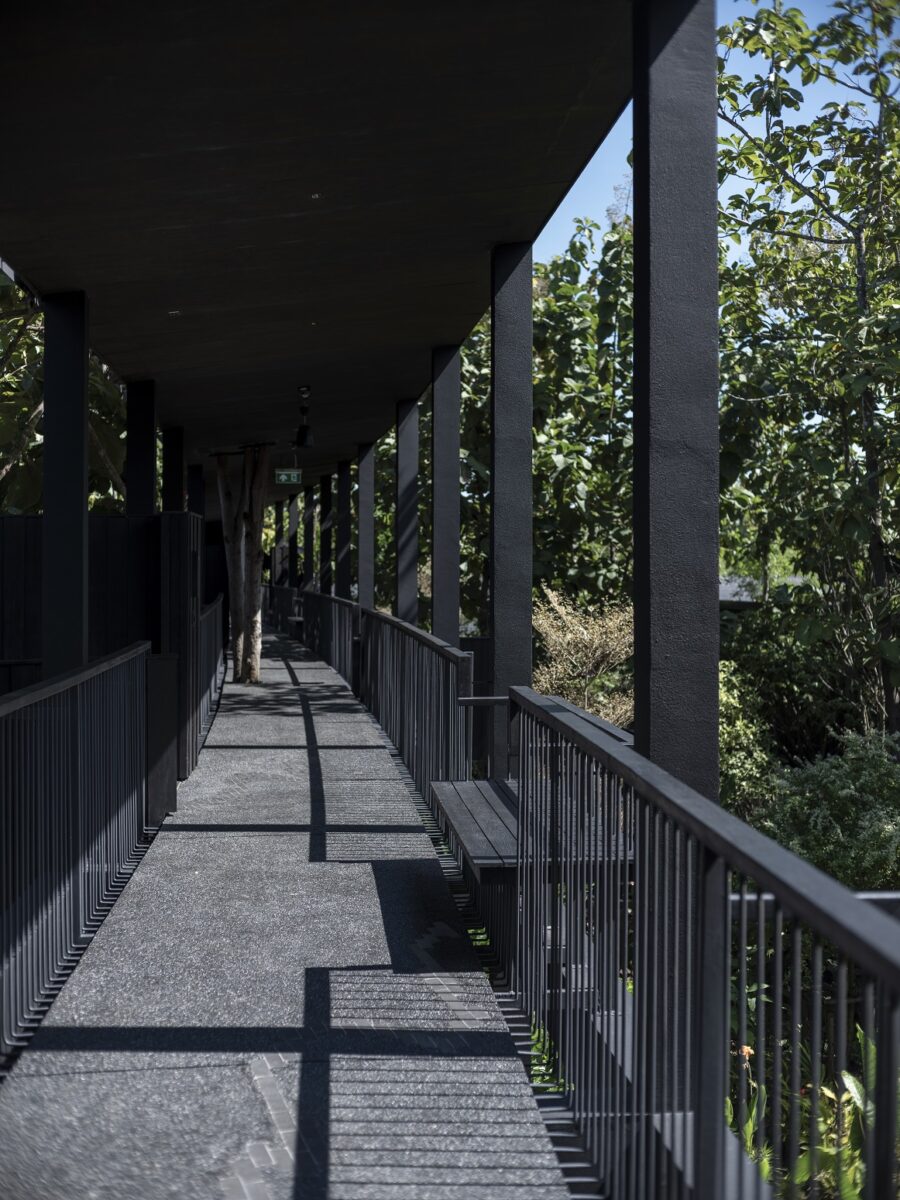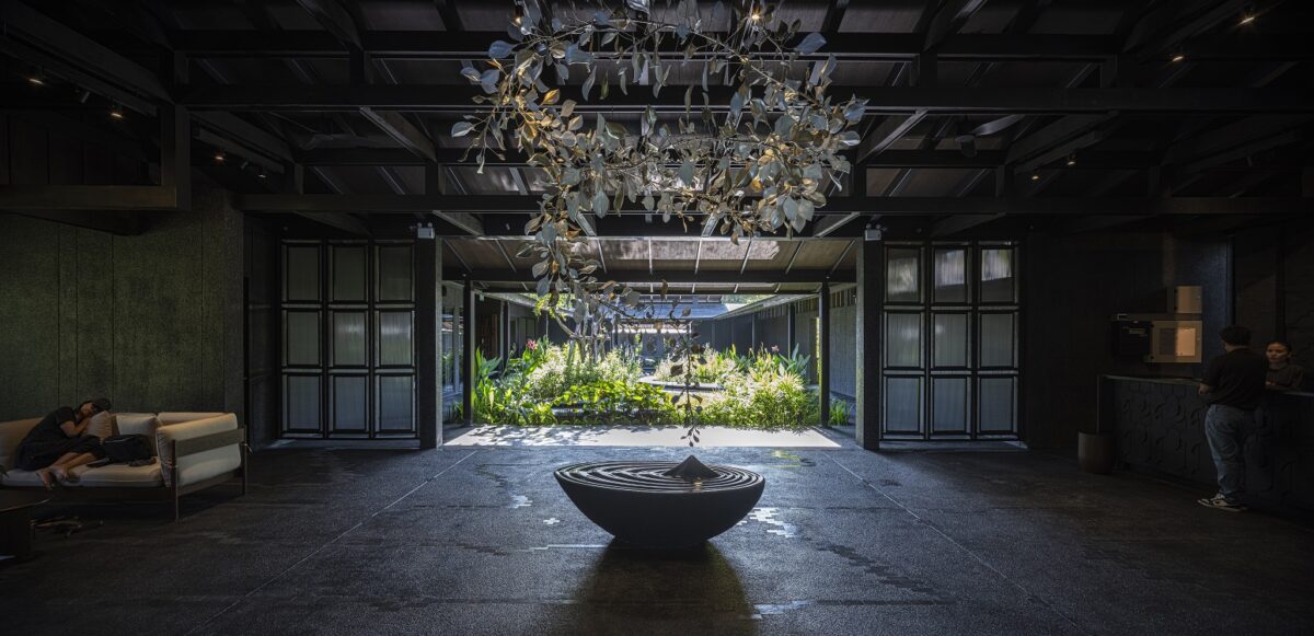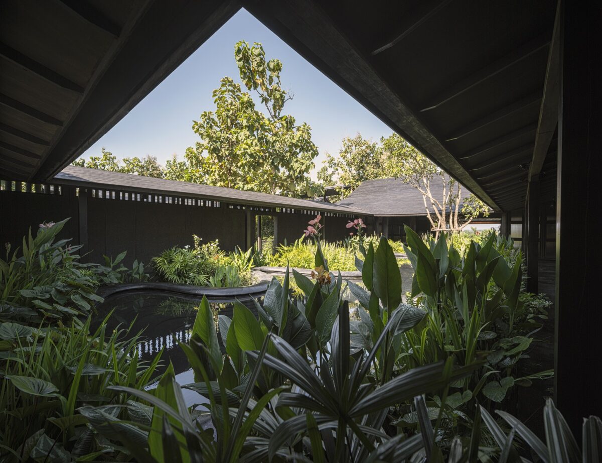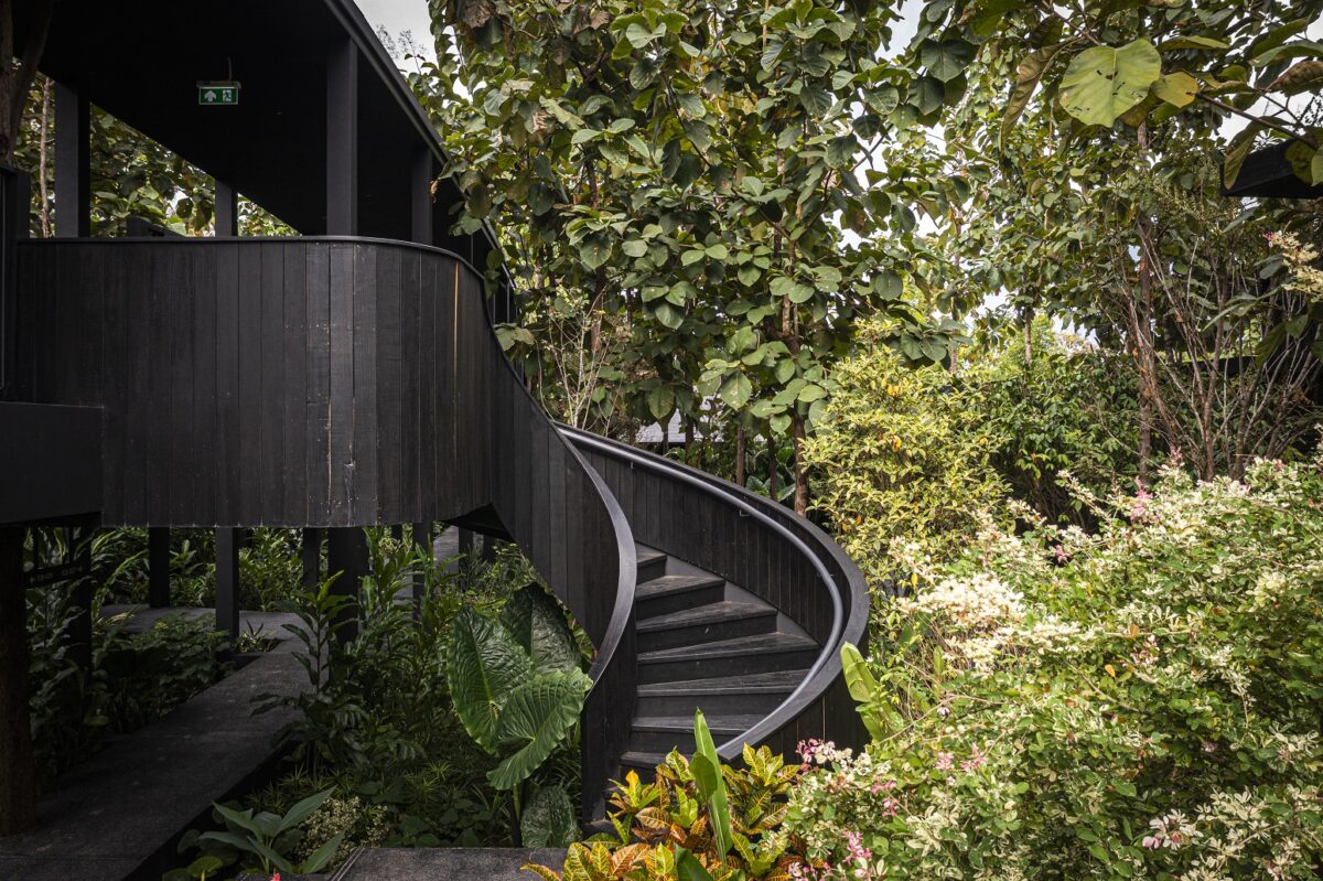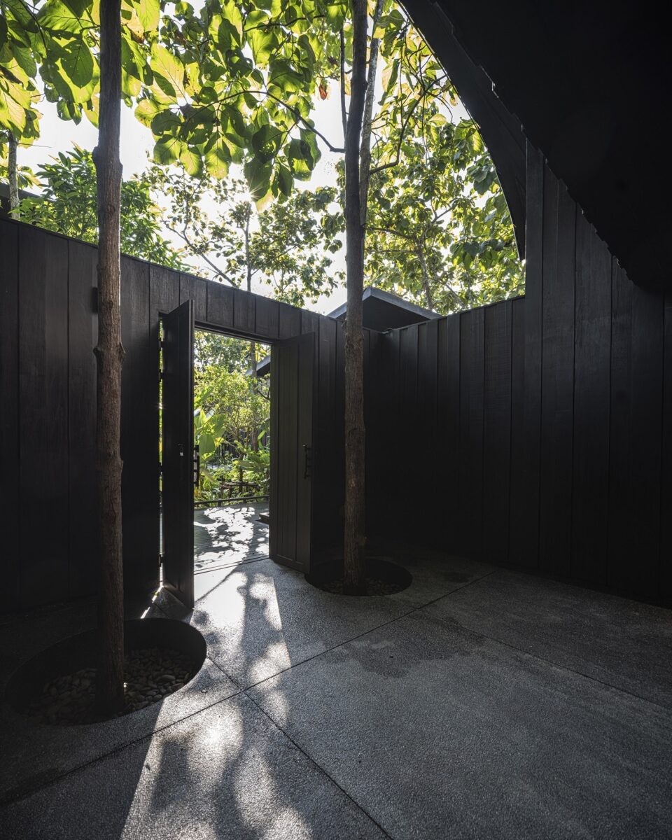 ผสานกับภาพจำที่สถาปนิกมีต่อบ้านไทยล้านนาอย่าง “บ้านดำ” มาเป็นแรงบันดาลใจในการออกแบบ ด้วยการหยิบองค์ประกอบอย่างไม้สักทำสีดำทั้งหลังเพื่อสื่อถึงภูมิปัญญาการรักษาเนื้อไม้ของคนเหนือในอดีต ที่ใช้น้ำมันยาง หรือรักทาบ้าน เรือนไทยเก่าแก่ทางภาคเหนือจึงมักมีสีเข้ม นอกจากนี้ยังนำเรื่องของการเปิดช่องแสงเพียงเล็กน้อยที่ช่วยกันลมหนาว จนทำให้บ้านมีแค่แสงสลัว ๆ ยามกลางวัน มาประยุกต์ใช้กับงานออกแบบพื้นที่ เพื่อเล่าความเป็นล้านนา แต่มีดีไซน์ที่ร่วมสมัย