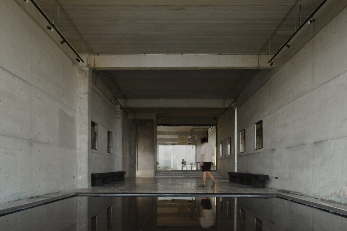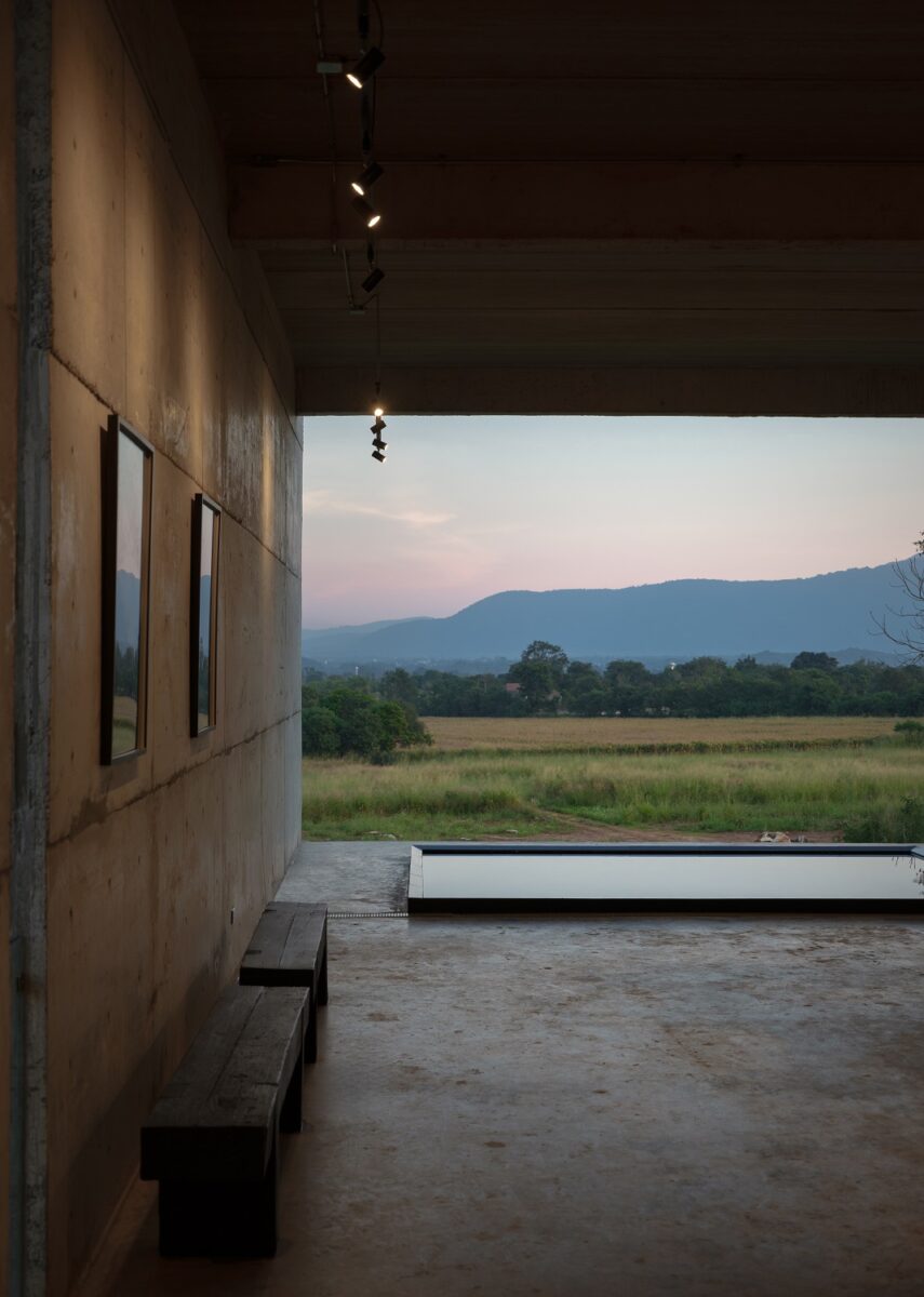 โดยพื้นที่ปลายอุโมงค์นี้ ทำหน้าที่เชื่อมโยงผู้ใช้งานเข้ากับบริบทธรรมชาติ ด้วยการออกแบบสเปซเปิดโล่ง มีสระน้ำสะท้อนวิวภูเขา และคลื่นน้ำ ช่วยให้อาคารคอนกรีตที่ดูนิ่งสงบมีความเคลื่อนไหวและมีชีวิตมากขึ้น ทั้งยังสร้างบรรยากาศให้รู้สึกสงบและผ่อนคลาย ขณะเดียวกันหากมีลมพัดผ่านผิวน้ำเข้ามายังโถงอาคารจะช่วยให้พื้นที่บริเวณนี้เย็นสบาย จึงถือเป็นมุมไฮไลต์ เปรียบเสมือนเฟรมภาพขนาดใหญ่ที่รังสรรค์โดยธรรมชาติ ช่วยสร้างมูลค่าให้กับสถานที่ ดึงดูดสายตาได้อย่างดี