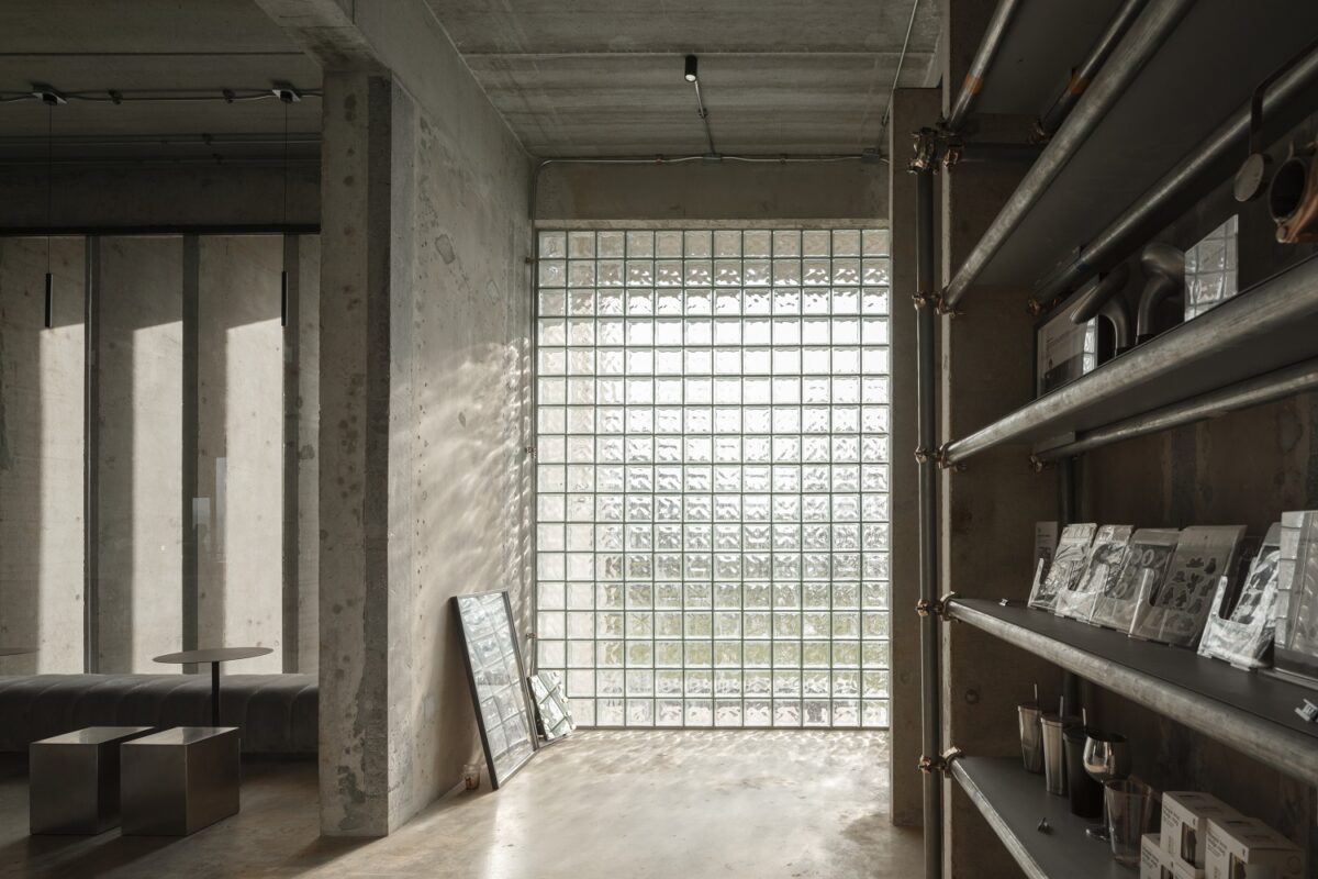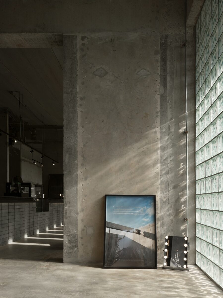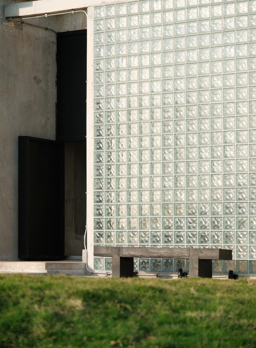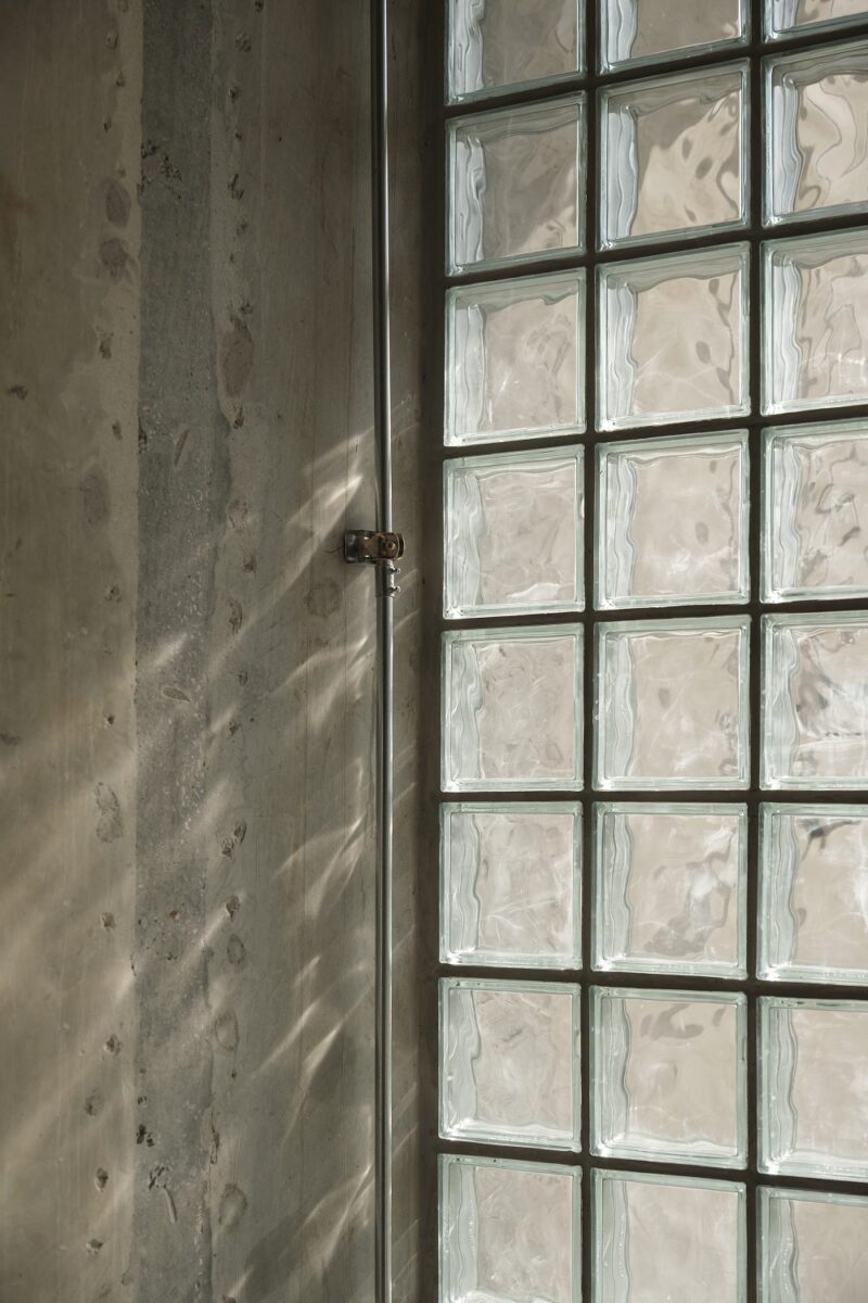 นอกจากตัวอาคารจะใช้วัสดุหลักอย่าง ‘คอนกรีต’ ยังร่วมด้วยวัสดุชนิดอื่นอย่าง ‘บล็อกแก้ว’ เพื่อนำแสงเข้าสู่ภายในอาคาร และ ‘เหล็ก’ สำหรับเป็นราวกันตก ซึ่งมีบทบาทสำคัญในการปรับเปลี่ยนความรู้สึกของอาคาร จากที่ดูหนักและทึบตันให้มีความเบาและมีมิติที่น่าสนใจมากขึ้น