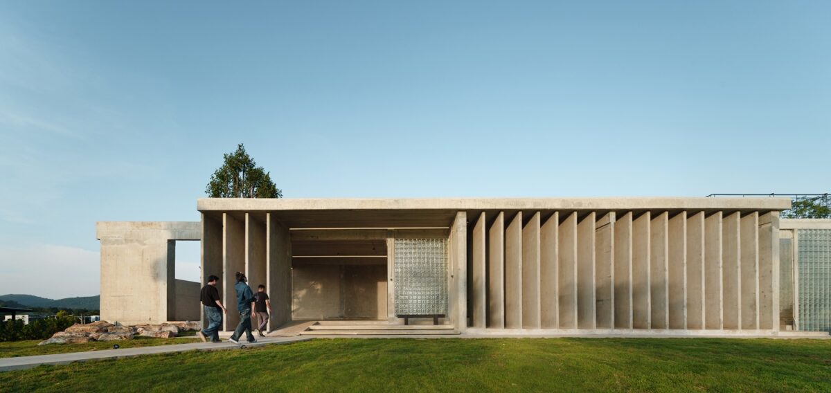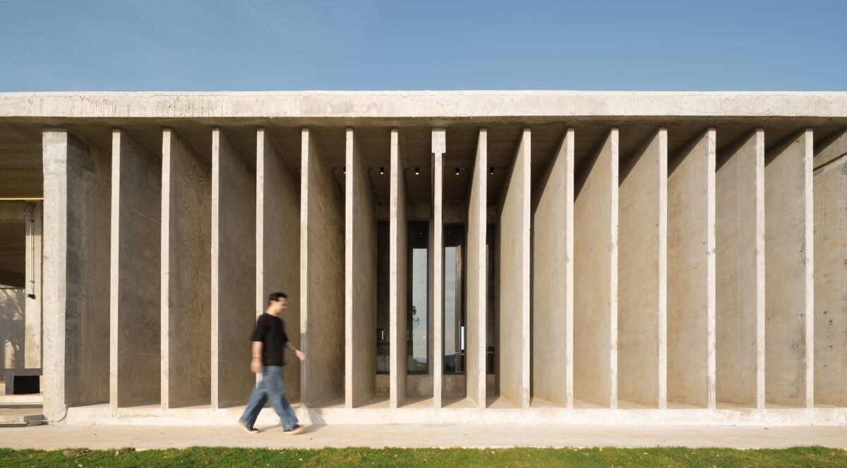 ใช้เส้นสายที่เรียบง่ายของครีบอาคารเพื่อออกแบบเป็นฟาซาด ไม่ให้รบกวน หรือแข่งกับความละเอียดอ่อนของเส้นสายตามธรรมชาติในงานภูมิสถาปัตยกรรมรอบข้าง