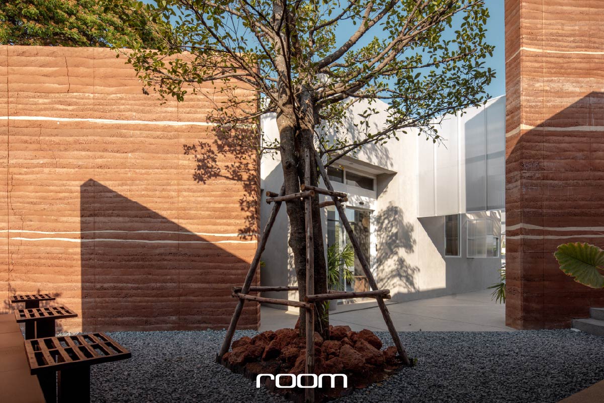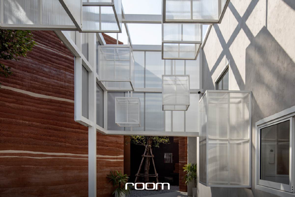 นอกจากนี้ยังต่อยอดรูปทรงสามเหลี่ยมและเส้นสายที่เรียบง่ายมาใช้ออกแบบอาคารที่แบ่งพื้นที่ใช้งานคล้ายการวางผังบ้านเรือนไทย โดยแบ่งเป็นก้อนอาคาร มีพื้นที่ชาน และพื้นที่คอร์ตอยู่ตรงกลาง ทำหน้าที่เชื่อมฟังก์ชันต่าง ๆ เข้าด้วยกัน