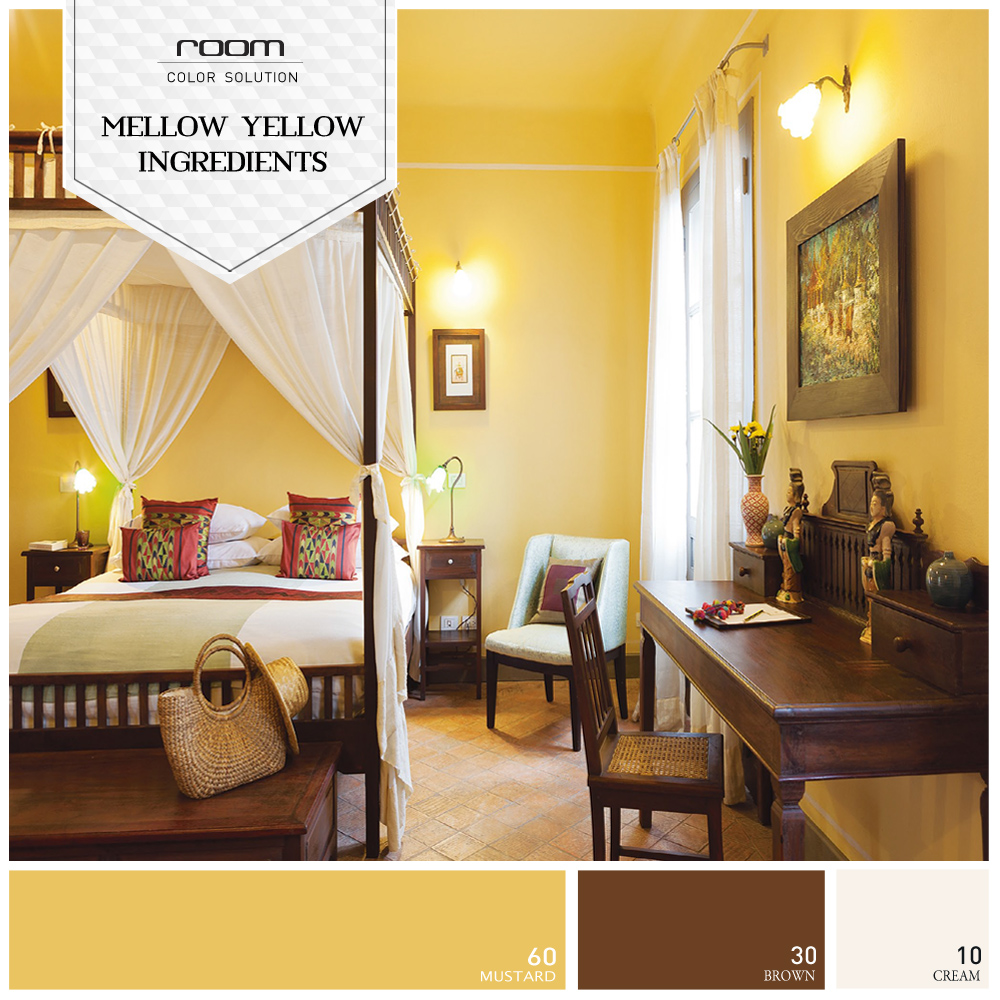 ห้องสีเหลืองนวล แซมด้วยเฟอร์นิเจอร์ไม้แบบไทยๆ ก็เป็นอีกคู่สีที่เข้ากันได้ดี เพิ่มความอบอุ่นด้วยการใช้ไฟสี warm white