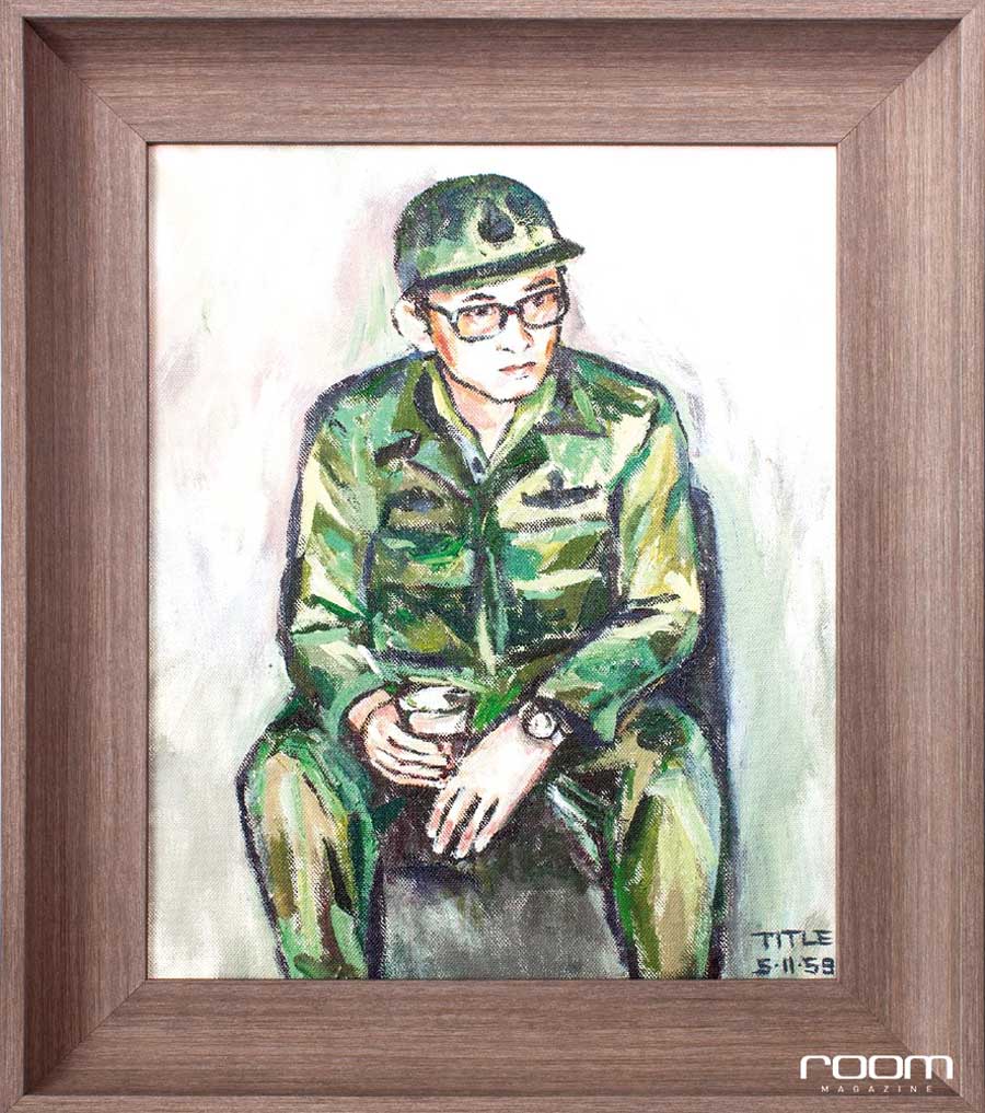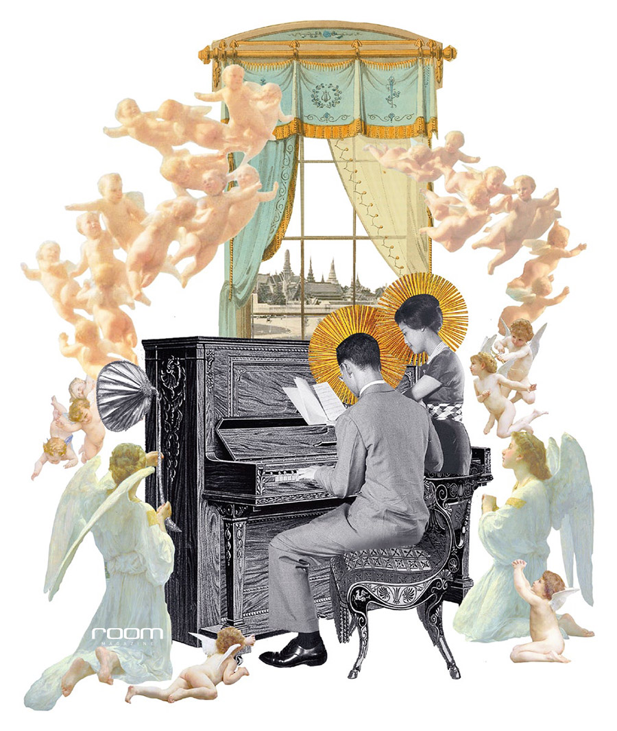 “เหตุผลที่เลือกใช้เพลงพระราชนิพนธ์มาสร้างสรรค์งาน เพราะความทรงจำแรกที่มีต่อพระองค์ท่านคือ เรื่องดนตรีครับ ขั้นตอนการทำงานเริ่มจากนำคำที่จะใช้เขียนมาจดไว้ก่อน แบ่งคำเป็นก้อน ๆ และเริ่มจัดคอมโพสผมคิดว่าความไม่แน่นอน การเติมแต่งสด ๆ รอยเปื้อนนิด ๆ น้ำหนักเท่ากันบ้าง ไม่เท่ากันบ้าง เป็นเสน่ห์ของดินสอที่ดูเหมาะกับดนตรีบลูส์ดีครับ” และสำหรับใครที่ยังไม่รู้ ชายหนุ่มนักประดิษฐ์ไทม์แมชีนจากตัวหนังสือคนนี้ยังเป็นดีไซเนอร์รุ่นใหม่ไฟแรงผู้อยู่เบื้องหลังภาพเพ้นต์บนผนังห้องซึ่งเป็นหน้าปกของนิตยสาร room ฉบับนี้อีกด้วย