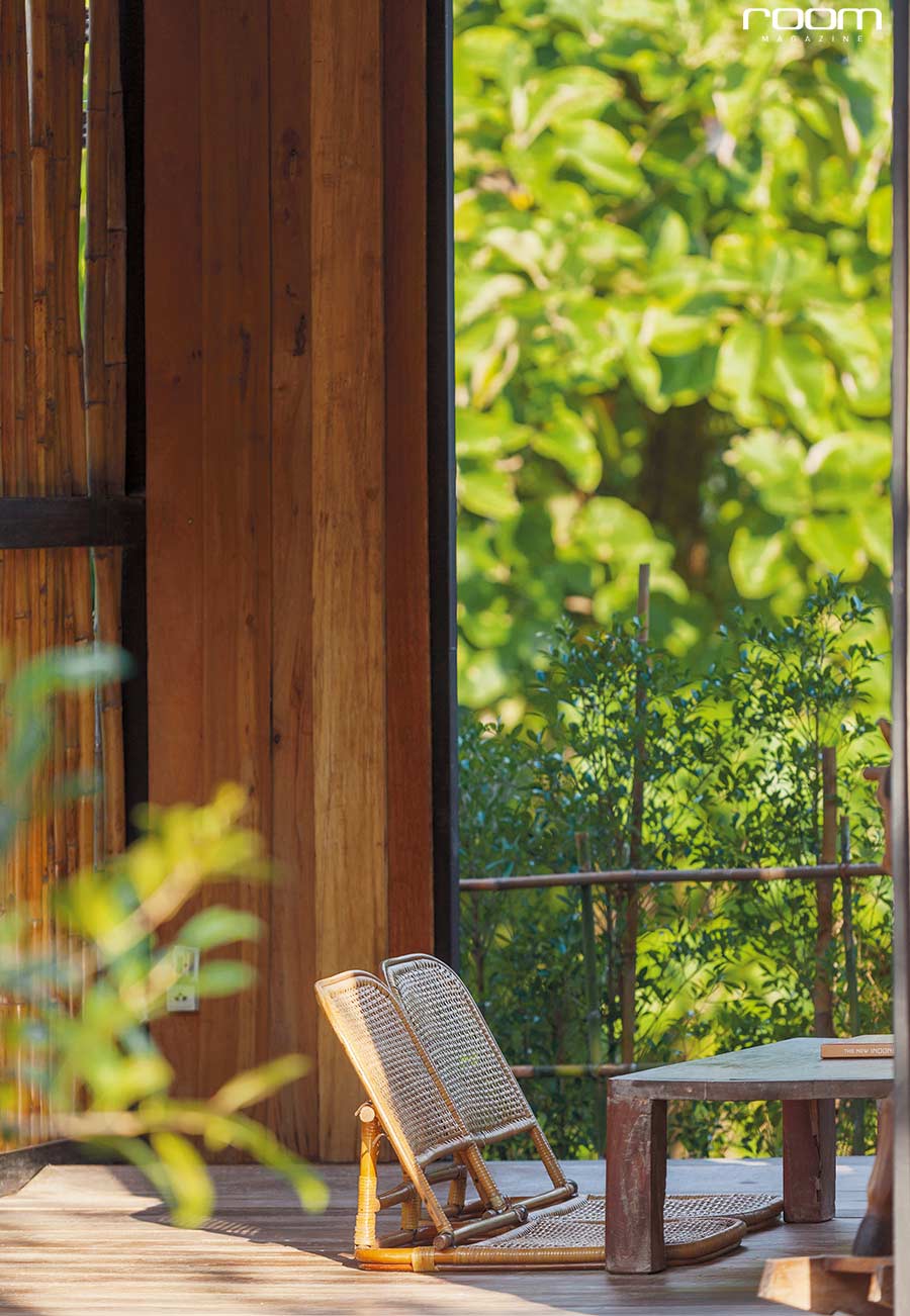 “เบรกภาพตัวอาคารไม่ให้ดูโมเดิร์นมากเกินไป ด้วยการเลือกใช้บานเกล็ดเพื่อให้ดูไทย ๆ ขึ้น เพราะถ้าเลือกใช้กระจกบานใหญ่ก็จะดูเป็นฝรั่งไป หรืออย่างภูมิทัศน์เราก็เลือกต้นไม้ไทย ๆ ง่าย ๆ เห็นได้ตามคันนา ไม่ปลูกต้นไม้ฝรั่งเพราะรู้สึกว่าสไตล์โมเดิร์นเข้าถึงลำบากและไม่ใช่สไตล์เรา เราชอบความเก่าในความทันสมัย ชอบบ้านนอกที่ทันสมัยมากกว่า” คุณดิวเล่าให้เราฟังถึงการออกแบบตัวอาคารที่ได้แรงบันดาลใจมาจากภูเขา