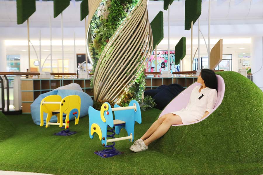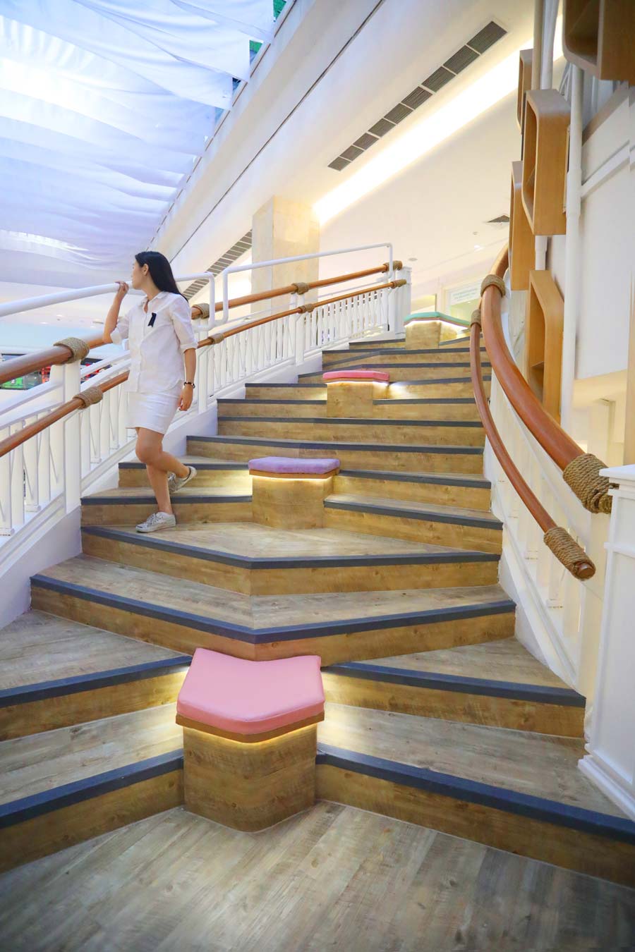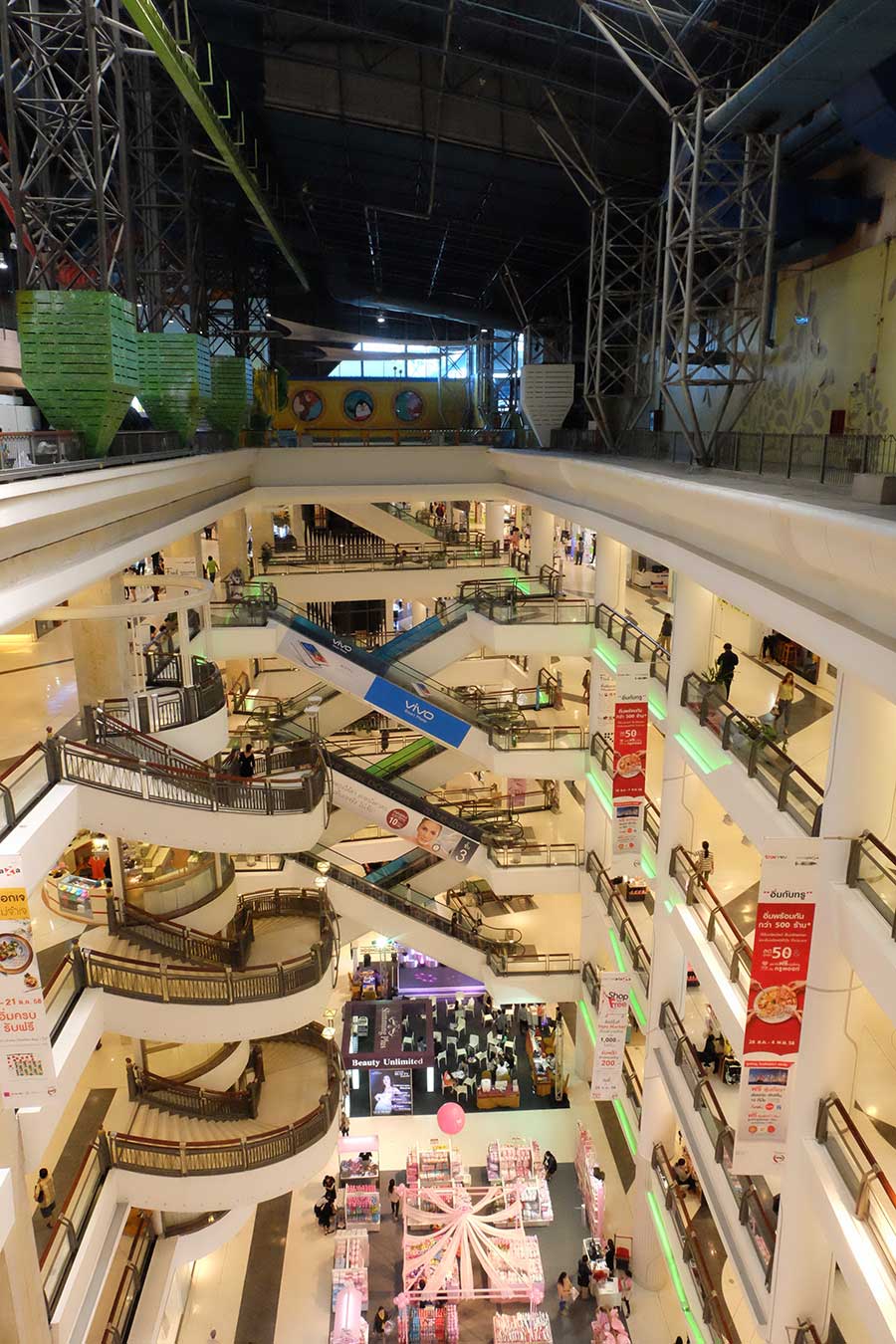ต่อด้วยชั้น 3 ที่ประกอบด้วยร้านค้าเฉพาะทาง สถานเสริมความงาม และชั้น 4 ที่ส่วนใหญ่เป็นร้านขายเฟอร์นิเจอร์ ซึ่งแต่เดิมจากการสังเกตเป็นชั้นที่คนเดินผ่านน้อย จึงจัดให้มีพื้นที่นั่งที่น่าสนใจ อย่างเก้าอี้แขวนรังนก ในชั้น 3 และสไลเดอร์ที่น่าตื่นเต้นลงจากชั้น 4 พร้อมทั้งศาลานั่งพักคอย ทำให้พื้นที่ที่เคยเงียบเหงาจุดนี้ มีชีวิตชีวามากขึ้น ด้วยกิจกรรมระหว่างชั้น และสุดท้ายพื้นที่ชั้น5 ที่อยู่ใกล้กับจุดรอรถไฟพาชมศูนย์สำหรับเด็ก และอยู่ติดกับสวนสนุกในชั้น6 จึงเป็นที่ที่มีเด็กค่อนข้างมาก จึงจัดพื้นที่บริเวณนี้ให้เป็นพื้นที่สำหรับเด็ก ด้วยการติดตั้งเครื่องเล่นม้าโยก เก้าอี้เนินหญ้าสีสันสดใส