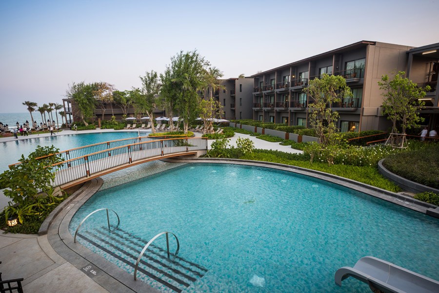 สัมผัสประสบการณ์เหนือระดับที่ Hua Hin Marriott Resort & Spa รีสอร์ทสุดหรูริมชายหาดหัวหินที่สวยงาม หรูหรา ด้วยสถาปัตยกรรมแบบโมเดิร์นผสมผสานกับความงดงามของไทยในสไตล์โคโลเนียล ภายในตกแต่งด้วยเฟอร์นิเจอร์จักรสาน นำเสนอออกมาในโทนสีขาวคลาสสิก แถมลูกเล่นที่เพิ่มความหวานและตอกย้ำความเป็นไทย ด้วยลาย “ดอกพิกุล” ที่สามารถพบเห็นได้ทั้งบริเวณผนัง ฝ้าเพดาน ด้ามจับประตู ทั่วบริเวณภายในรีสอร์ท ซึ่งผสมผสานเข้ากับบรรยากาศในรีสอร์ทได้อย่างลงตัว ที่นี่มีสระว่ายน้ำถึง 5 สระ เหมาะสำหรับมาเที่ยวกับครอบครัว คู่รัก หรือเพื่อนฝูง ด้วยสิ่งอำนวยความสะดวกที่ตอบรับกับทุกไลฟ์สไตล์