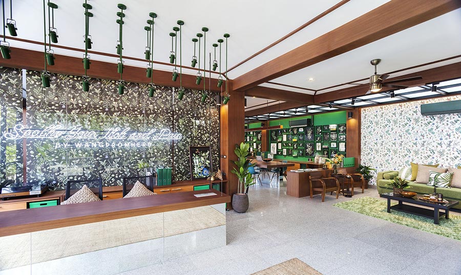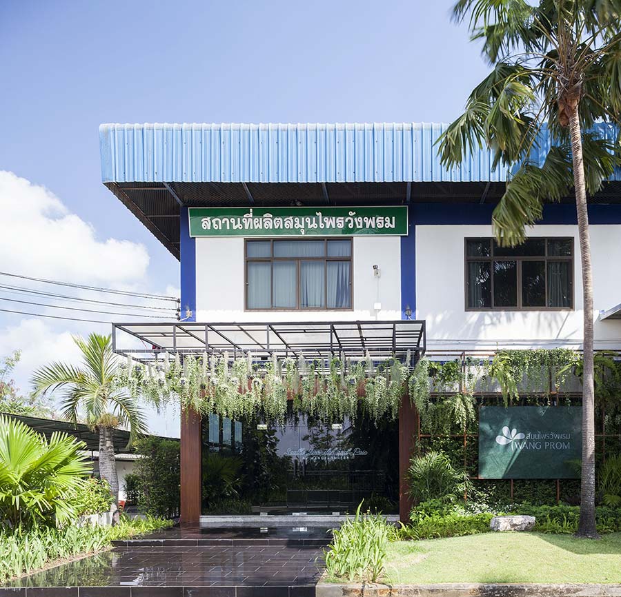ความน่าสนใจของการเปลี่ยนภาพลักษณ์ของแบรนด์สมุนไพรแห่งนี้คือการเลือกที่จะรีโนเวต ‘โรงงานเก่า’ ของทางครอบครัวเพื่อเปลี่ยนเป็น ‘สำนักงานวังพรม’ เพื่อลดต้นทุนและยังได้พื้นที่ใช้สอยที่มากขึ้น โดยฟังก์ชั่นที่ได้ต้องการนอกจากจะเพื่อเป็นสำนักงานแล้ว ยังต้องการให้เป็นพื้นที่รับรองลูกค้าชาวต่างชาติ ไปจนถึง ‘นิเวศวังพรม’ คอมมูนิตี้แห่งใหม่ของอำเภอสามพรานที่นำเอาสมุนไพรต่อยอดไปเป็นผลิตภัณฑ์ รวมถึงการจัดจัดอีเวนต์หรืองานแฟร์ในพื้นที่ตลอดทั้งปี เพื่อสื่อสารถึงสรรพคุณของสมุนไพรไทยให้เป็นที่รู้จักในระดับสากล