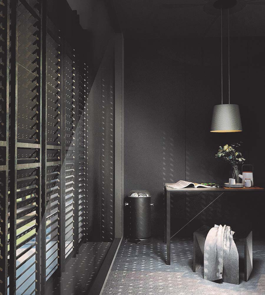 - 2- รุ่น DOT ระแนงตกแต่งที่สะท้อนแนวคิดที่ว่าอยากให้ความสำคัญกับการมองเห็นจากภายในสู่ภายนอกเพราะผู้คนส่วนใหญ่ใช้เวลาอยู่ในอาคารมากกว่า จึงเลือกใช้เทคนิคการเจาะรู (Perforated) ลงบนแผ่นสมาร์ทบอร์ด ในรูปแบบไล่เล็กใหญ่สลับไปมา ทำให้เกิดแสงเงาที่น่าสนใจภายในพื้นที่อาคาร