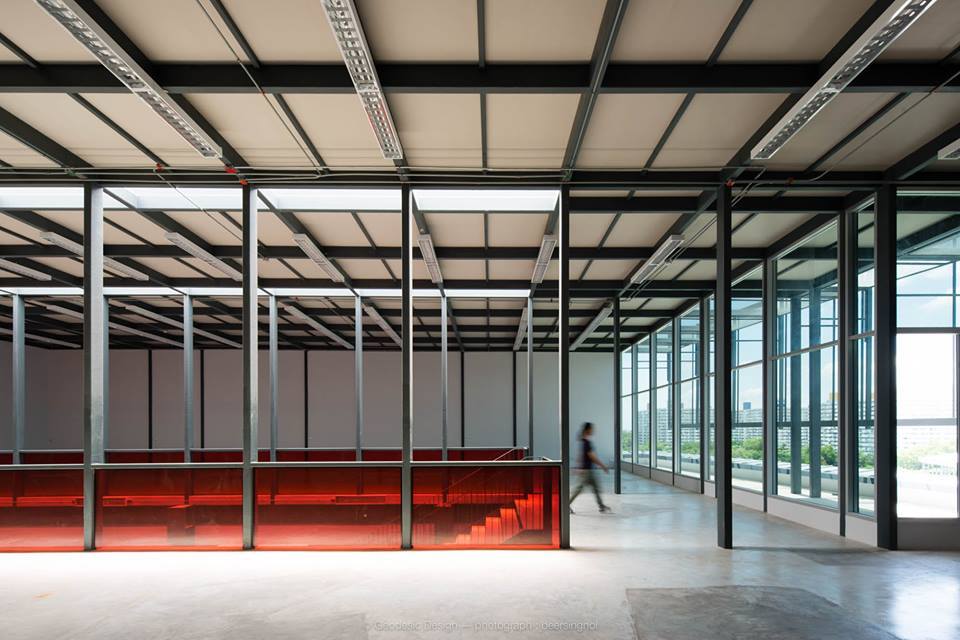 Silpakorn City Campus เมืองทองธานี อาคารเรียนดีไซน์เท่เฟี้ยว ที่มีหัวใจหลักในการออกแบบจากเรือนไทย และภายใต้ความเปลือย คือ สปิริตของอาคาร ที่เห็นถึงโครงสร้าง งานดีไซน์ ทุกอย่างที่เป็นของจริง กระตุ้นให้เกิดการเรียนรู้และตั้งคำถามของผู้ใช้สเปซ ฝึกคนให้ไปเป็นผู้สร้างอย่างแท้จริง
