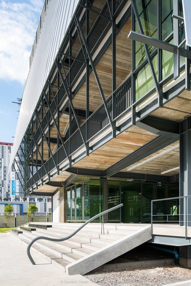 ภายใต้ความสวยงามยังมีปัจจัยหลัก ๆ อีก 4 ข้อ ที่นับเป็นหัวใจของงานออกแบบอาคารเรียนหลังนี้ ซึ่งประกอบไปด้วย การใช้หลักออกแบบของเรือนไทย โดยพื้นที่ชั้นหนึ่ง ได้ออกแบบให้เปิดโล่งเปรียบเหมือนชั้นใต้ถุน ใช้ทำกิจกรรมนันทนาการของนักศึกษา ปัจจัยที่สองคือโครงสร้างของอาคารที่เลือกใช้วัสดุสำเร็จอย่างเหล็ก โพลีคาร์บอเนต พื้นสำเร็จรูปมาเป็นโครงสร้างหลัก เพื่อตอบโจทย์ความรวดเร็วในการก่อสร้าง ทั้งยังสามารถรื้อถอนได้ง่ายหากในอนาคตมีการเปลี่ยนแปลง