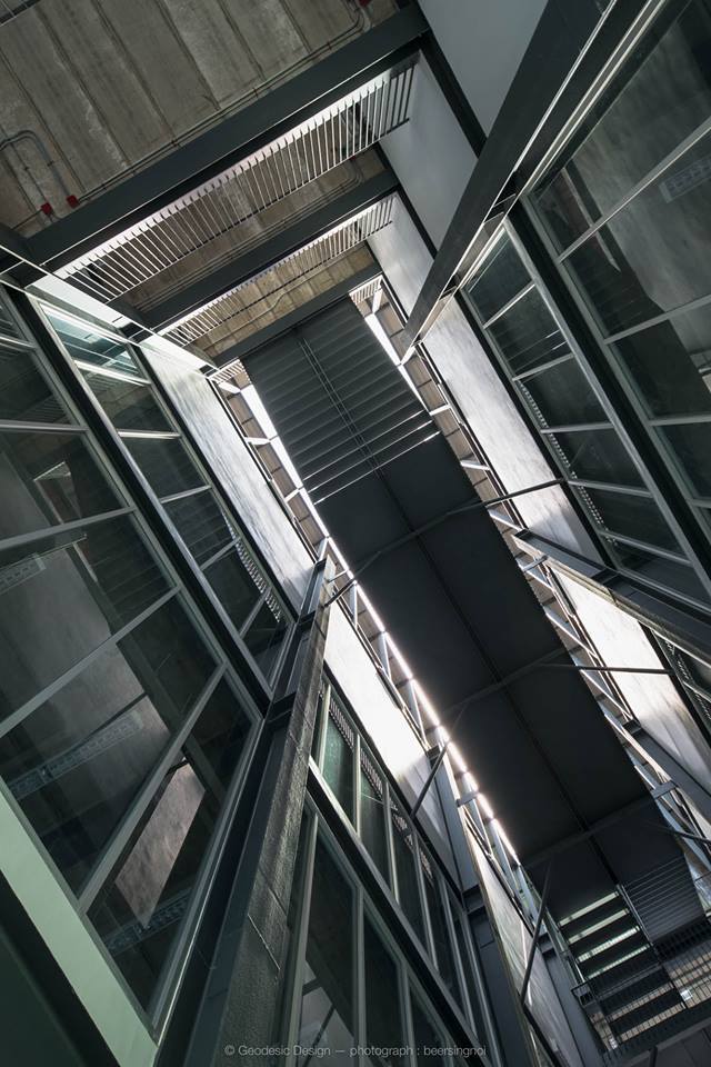 สามคือการออกแบบเพื่อเป็นอาคารประหยัดพลังงาน ใช้ประโยชน์จากบ่อน้ำด้านล่างสร้างสภาวะน่าสบาย ร่วมกับเจาะช่องเปิดหลังคาเพื่อเปิดรับแสงธรรมชาติเข้าสู่อาคาร จนแทบไม่ต้องเปิดไฟเลยในเวลากลางวัน สมทบด้วยแผงฟาซาดโดยรอบที่มีการบิดองศาเพื่อให้เกิดการระบายความร้อน และช่วยปกป้องแสงแดดจากภายนอกที่จะเข้าสู่ตัวอาคาร