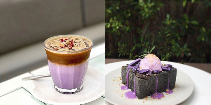 คาเฟ่สีขาวสะอาดตาในโครงการบ้านสีลม ซอยสีลม 19 ตกแต่งในสไตล์ Minimal เรียบง่าย เน้นกระจกบานใหญ่ ทำให้เห็นบรรยากาศด้านนอก สำหรับเมนูมันม่วงของทางร้าน ก็จะเป็น Be My Latte ลาเต้มันม่วง ท็อป ด้วยEspressoเข้มๆ หอมมันกลมกล่อมด้วยรสหวานที่เป็นเอกลักษณ์จากมันม่วง หรือจะเป็น Kumamoto Volcanic Toast ขนมปังก้อนสี่เหลี่ยมสีดำที่ดูสุขุม ท็อปด้วยไอศกรีมสีม่วง เคียงข้างมากับชิ้นมันม่วงรอบๆ แค่เห็นภาพกลิ่นหอมๆก็ลอยออกมาด้วยแล้วค่ะ