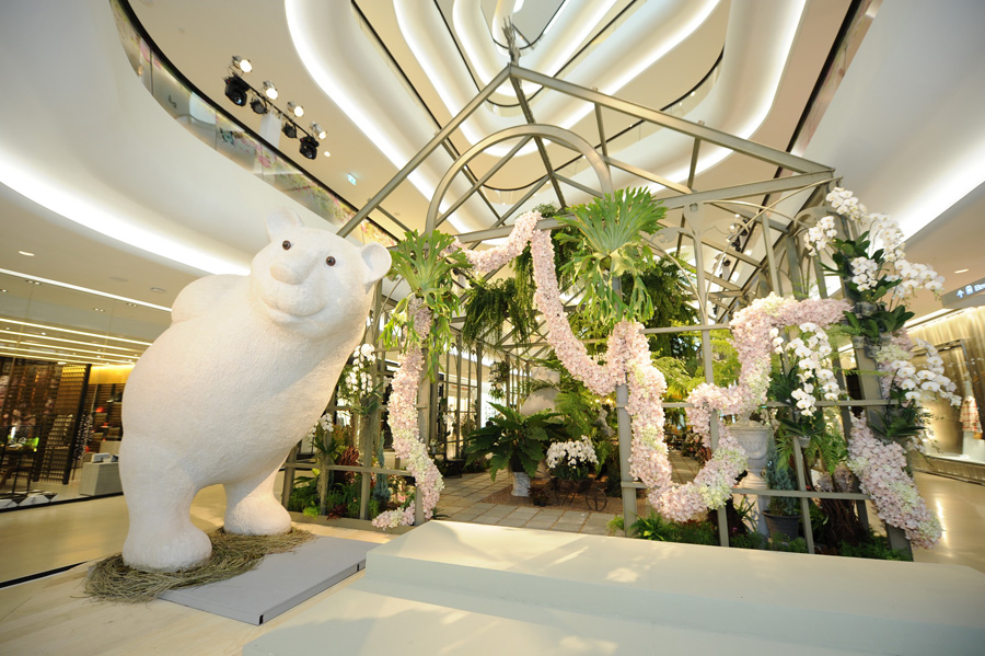 โดยพื้นที่ศูนย์การค้าเซ็นทรัล เอ็มบาสซี เนรมิตพื้นที่ชั้น G ให้กลายเป็น “ฟลอรัลเฮ้าส์” สวนในบ้านสุดตระการตาด้วยโครงสร้างสถาปัตยกรรมสุดล้ำที่มีความสูงถึงตึก 2 ชั้น พร้อมสร้างมุมมองแบบ 360 องศาให้ชมพรรณไม้ที่จัดตกแต่งโดยรอบทั้งห้อยระย้าและประดับแจกันดอกไม้ โดยพรรณไม้ที่ใช้เน้นโทนสีขาวอย่างฟาแลน เพื่อสะท้อนความเป็นสากลที่กลมกลืน