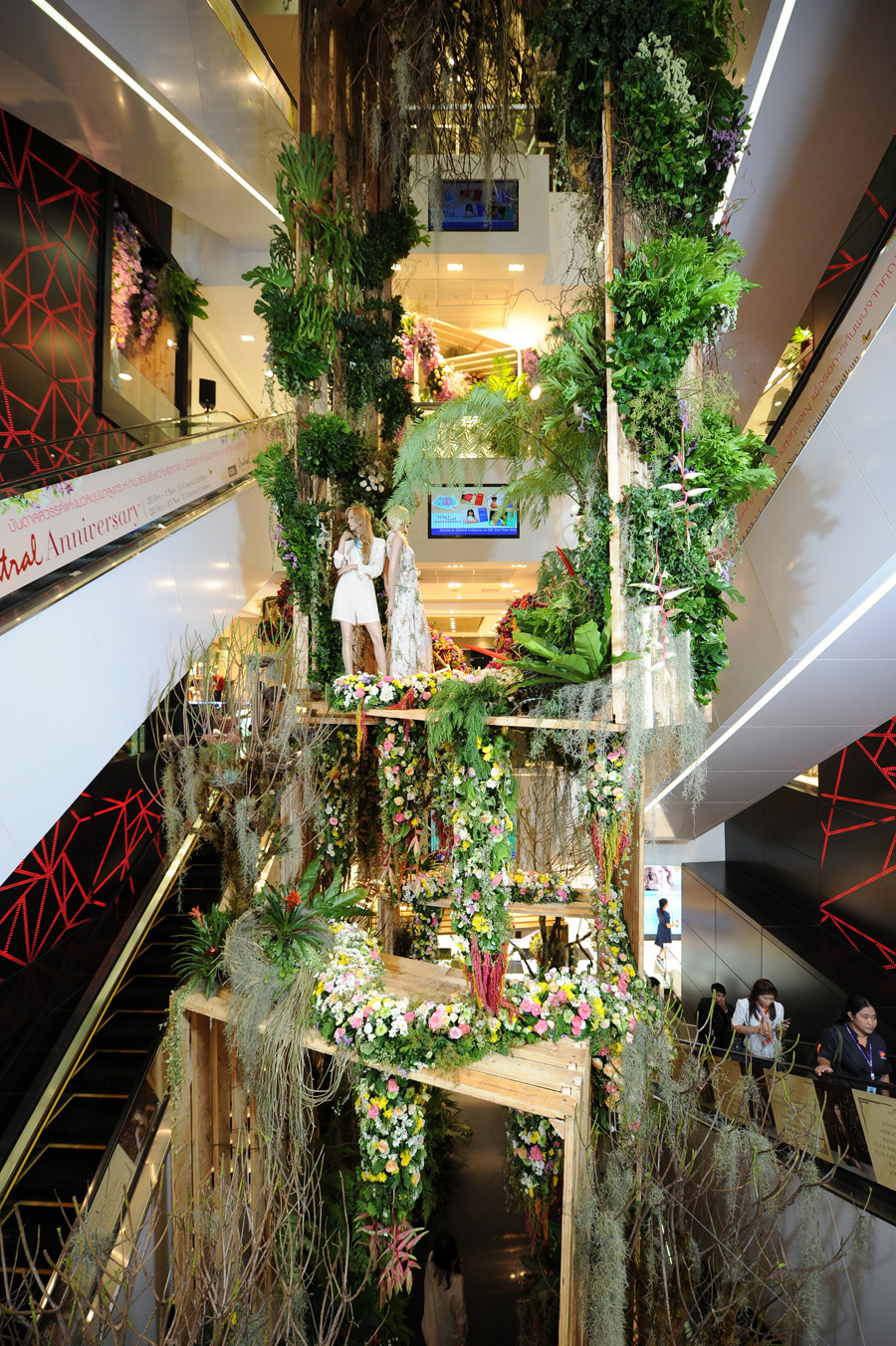 นอกจากนี้ในแต่ละชั้นของศูนย์การค้ายังเนรมิตสวนดอกไม้หลากสไตล์ตามประเภทของสิ้นค้าที่จำหน่ายอีกด้วย เริ่มจากชั้น 2 แผนกเสื้อผ้าสตรีกับดอกไม้ในโทนสีจัดและสดชื่นอย่างสีบานเย็นและสีม่วง ต่อมาชั้น 3 แผนกเสื้อผ้าวัยรุ่น จัดดอกไม้ในโทนสีหวานสดชื่น ให้ความรู้สึกฟรุ้งฟริ้งและความสดใสสมวัย ส่วนชั้น 4 แผนกเสื้อผ้าบุรุษ โดดเด่นด้วยโครงบ้านเหล็กขนาดใหญ่ ประดับด้วยดอกไม้โทนขาว – เขียว สะท้อนความเป็นสวนและธรรมชาติ ชั้น 5 แผนกโฮม เพิ่มความมีชีวิตชีวิด้วยดอกไม้โทนสีจัดอย่างแสดและเหลือง ปิดท้ายด้วยชั้น 6 แผนกเด็ก ที่นำหมีขาวขนาดใหญ่ตกแต่งด้วยดอกไม้สีขาวมาเป็นกิมมิก ส่วนฝั่นแผนกชุดชั้นในสตรี ตกแต่งด้วยดอกไม้โทนสีชมพูอ่อน มีโครงผ้าพลิ้วและมีแสงไฟก้านใน ดูคล้ายโคมไฟยักษ์แสนโรแมนติก