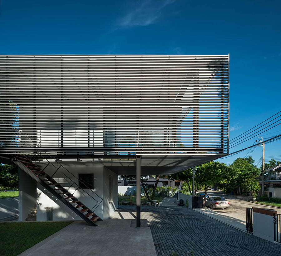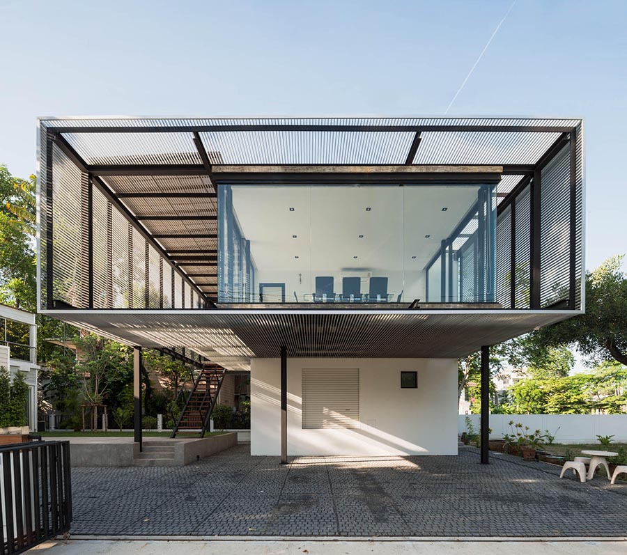 สังเกตได้ว่าความ “ทึบ-โปร่ง” ในหลายระดับทั้งส่วนที่ไม่มีการปิดล้อม ส่วนที่ปิดล้อมด้วยแผงอะลูมิเนียม ส่วนที่ปิดล้อมด้วยแผงอะลูมิเนียมและกระจก ตลอดจนส่วนที่ปิดล้อมด้วยผนังทึบ ซึ่งเป็นองค์ประกอบทางสถาปัตยกรรมที่ทีมออกแบบตั้งใจสื่อสารแนวคิดดังกล่าว ได้สะท้อนลักษณะการปิดล้อมที่แตกต่างกันตามปัจจัยการใช้งานในแต่ละพื้นที่ แต่ก็ยังคงความต่อเนื่องกันทางด้านการใช้งานเป็นกลุ่มก้อน โดยคำนึงถึงการใช้งานพื้นฐาน และทิศทางของแสงแดด เพื่อให้อาคารสำนักงานแห่งนี้ออกมาสมบูรณ์มากที่สุด
