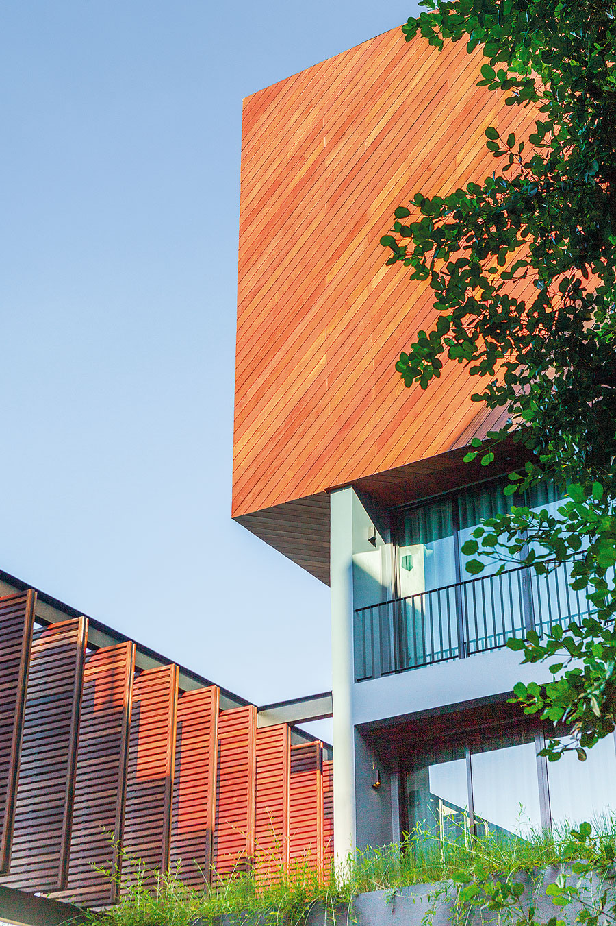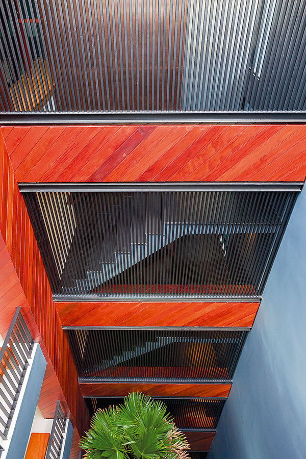 ปัจจุบันได้ทุบผนังบางส่วนออกเพื่อให้อาคารดูโปร่งโล่งสบายมากขึ้น สามารถเปิดรับแสงธรรมชาติได้เต็มที่ เพิ่มบรรยากาศที่ดูเป็นมิตร โดยยังคงโครงสร้างหลักคือแนวเสาและคานเดิม แต่ดัดแปลงผนังและช่องเปิดบางส่วนให้มีความเป็นโมเดิร์นในลักษณะเป็นกล่องซ้อนเหลื่อมกันอย่างน่าสนใจ ประกอบกับการใช้สีเทาเป็นหลัก จึงช่วยเพิ่มความรู้สึกทันสมัย แต่แฝงด้วยความอบอุ่นเป็นกันเอง เข้ากันได้ดีกับฟาซาดไม้ย้อมสีแดง ช่วยลดทอนความแข็งกระด้างของอาคารคอนกรีต และเพิ่มผิวสัมผัสที่เป็นธรรมชาติมากยิ่งขึ้น ทั้งยังเชื่อมต่อกับงานภูมิทัศน์บริเวณด้านหน้าที่จัดเป็นสวนหย่อมได้อย่างลงตัว